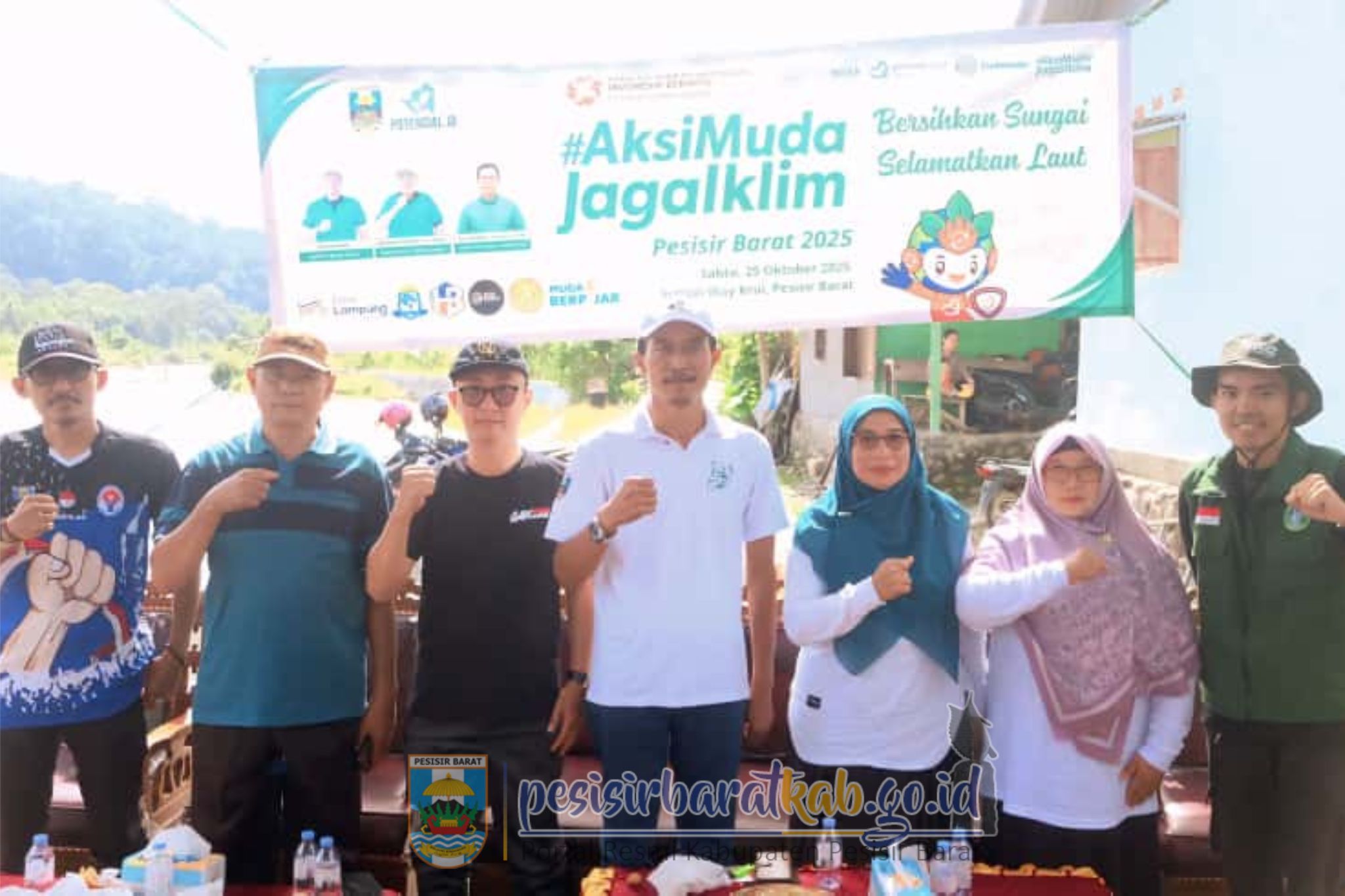 Pesisir Barat, 25 Oktober 2025 – Ratusan pemuda dan pelajar di Kabupaten Pesisir Barat bergotong membersihkan bantaran sungai Way Krui dalam kegiatan Aksi Muda Jaga Iklim (AMJI) 2025 yang berlangsung pada Sabtu, 25 Oktober 2025 di Pekon Ulu Krui, Kecamatan Way Krui, Kabupaten Pesisir Barat. Kegiatan ini mengusung tema “Bersihkan Sungai, Selamatkan Laut” sebagai ajakan bersama untuk menjaga ekosistem perairan dari ancaman pencemaran sampah.
