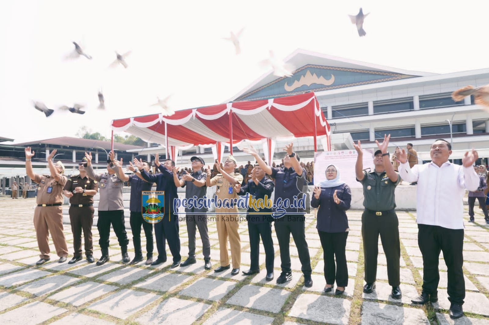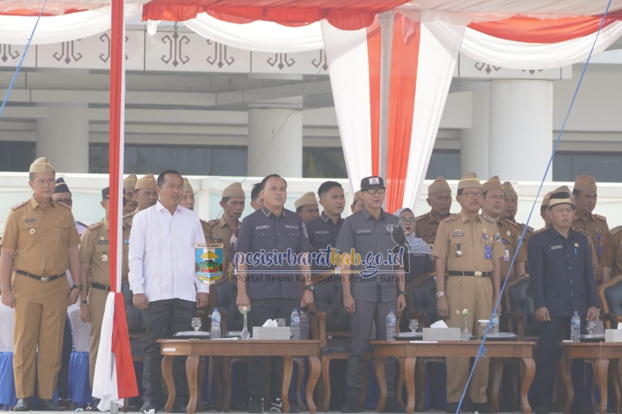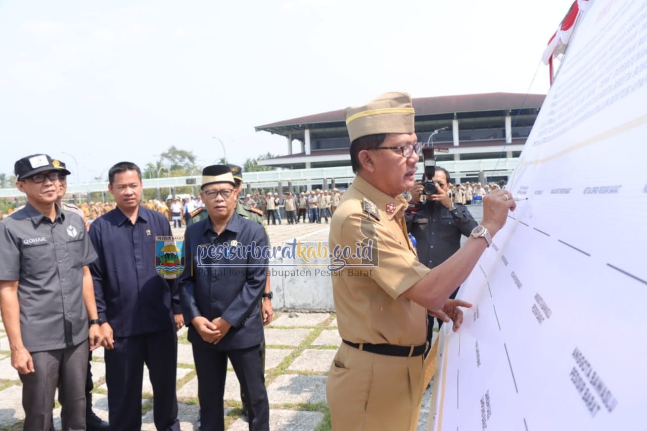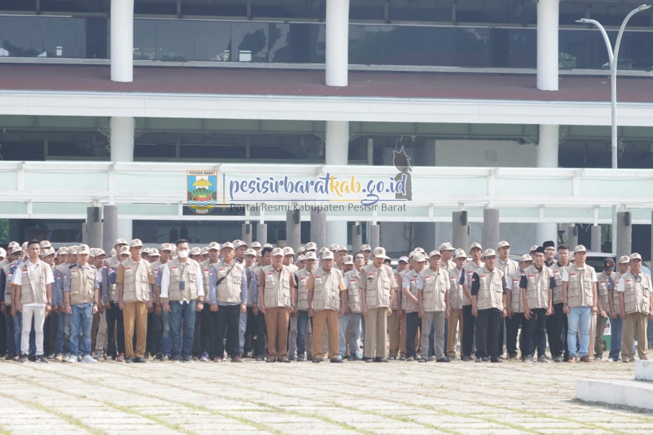 PESISIR BARAT-Kepala Dinas Komunikasi, Informatika, Statistik, dan Persandian (Diskominfotiksan), Suryadi, S.IP., M.M., menginformasikan bahwa, Badan Pengawas Pemilu (Bawaslu) Kabupaten Pesisir Barat (Pesibar) bekerjasama dengan Pemkab Pesibar menggelar deklarasi netralitas pegawai Aparatur Sipil Negara (ASN) dan apel siaga Bawaslu Pesibar pada Pemilu Tahun 2024, di Halaman Komplek Perkantoran Pemkab Pesibar, Senin (9/10).