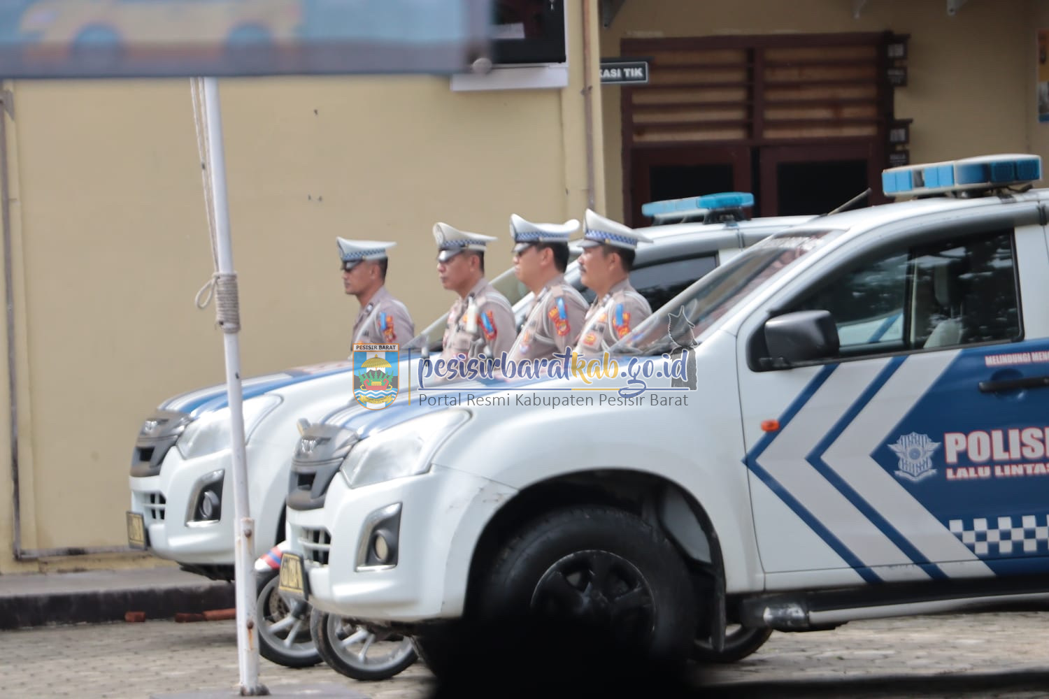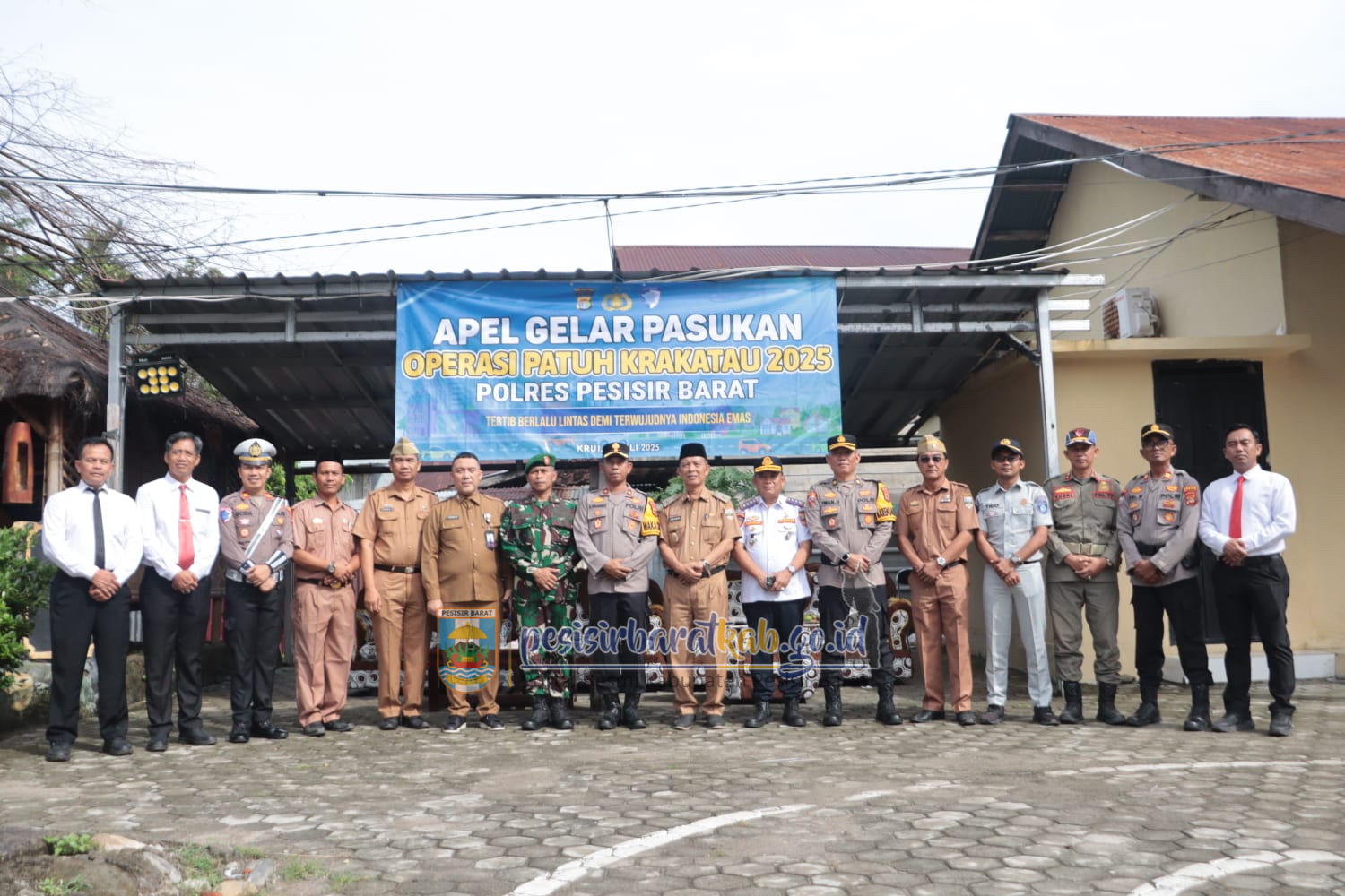 PESISIR BARAT-Asisten I Bidang Pemerintahan dan Kesejahteraan Rakyat Sekretariat Pemerintah Kabupaten (Pemkab) Pesisir Barat (Pesibar), Audi Marpi, S.Pd., M.M., menghadiri kegiatan apel gelar pasukan Operasi Patuh Krakatau Tahun 2025, di Mapolres Pesibar, Kecamatan Pesisir Tengah, Senin (14/7/2025).