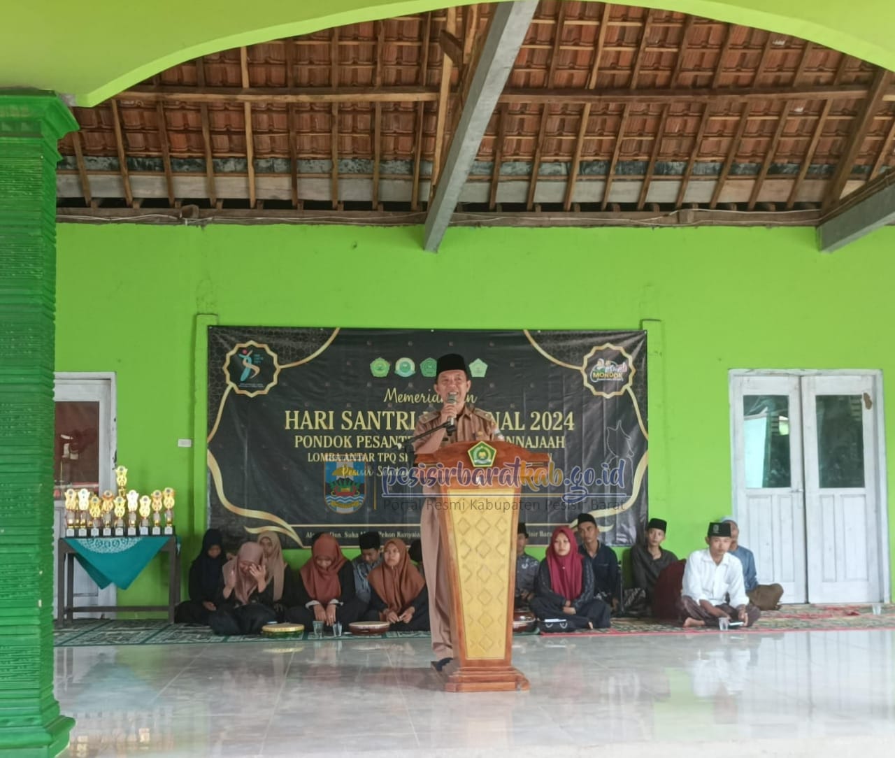 PESISIR BARAT-Kepala Dinas Komunikasi, Informatika, Statistik dan Persandian (Diskominfotiksan), Suryadi, S.IP., M.M., menginformasikan bahwa, Asisten I Bidang Pemerintahan dan Kesejahteraan Rakyat Sekretariat Pemerintah Kabupaten (Pemkab) Pesisir Barat (Pesibar), Audi Marpi, S.Pd., M.M., menghadiri peringatan Hari Santri Nasional, di Pondok Pesantren Miftachunnajah Pekon Persiapan Kunyaian Agung Kecamatan Pesisir Selatan, Selasa (22/10/2024).