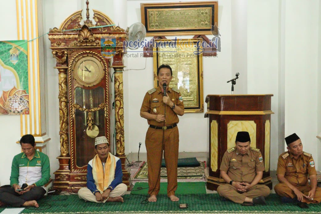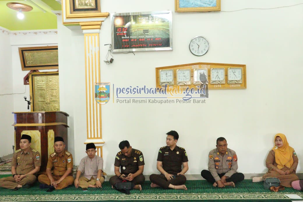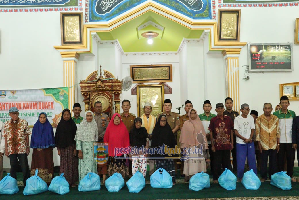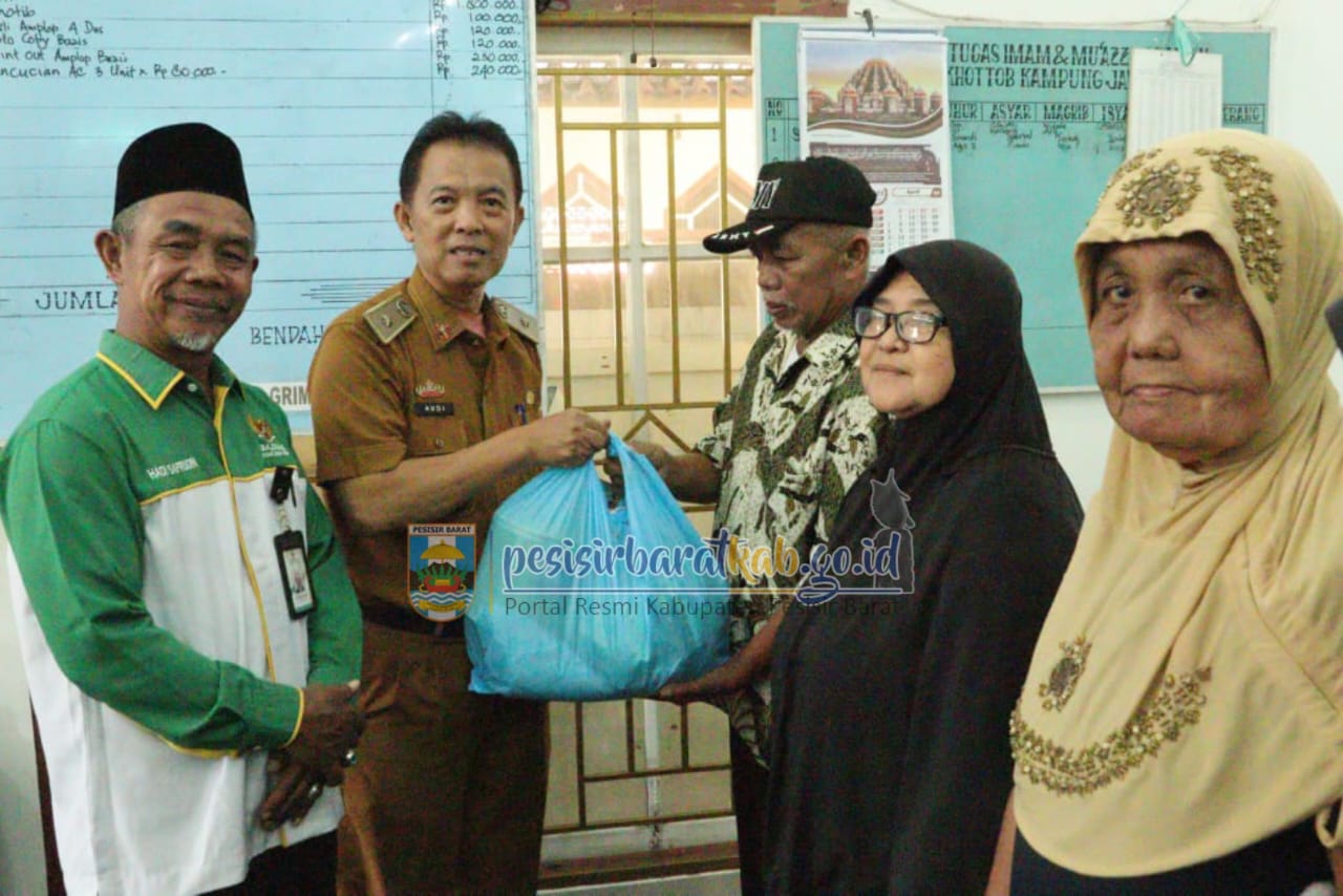 PESISIR BARAT-Kepala Dinas Komunikasi, Informatika, Statistik, dan Persandian (Diskominfotiksan) Suryadi, S.IP., M.M., menginformasikan bahwa, Asisten I Bidang Pemerintahan dan Kesejahteraan Rakyat Sekretariat Pemerintah Kabupaten (Pemkab) Pesisir Barat (Pesibar), Audi Marpi, S.Pd., M.M., menghadiri kegiatan penyerahan santunan kaum duafa di Masjid Al-Khotob Pekon Kampung Jawa oleh Badan Amil Zakat Nasional (Baznas) Pesibar, Senin(24/3/2025).
