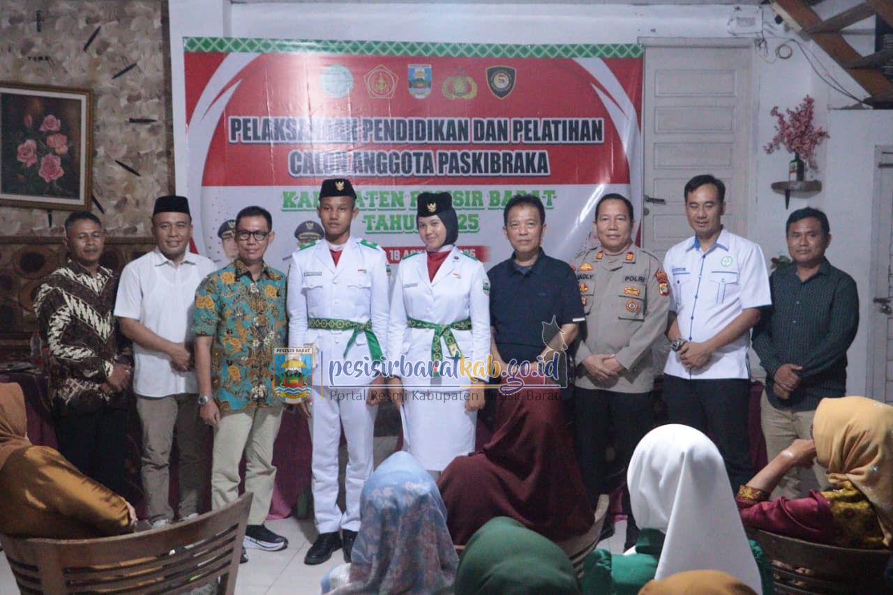PESISIR BARAT-Asisten I Bidang Pemerintahan dan Kesejahteraan Rakyat Sekretariat Pemerintah Kabupaten (Pemkab) Pesisir Barat (Pesibar), Audi Marpi, S.Pd., M.M., resmi menutup Pendidikan dan Pelatihan (Diklat) Paskibraka Pesibar Tahun 2025, di Hotel Monalisa Pekon Walur Kecamatan Krui Selatan, Minggu (17/8/2025) malam.