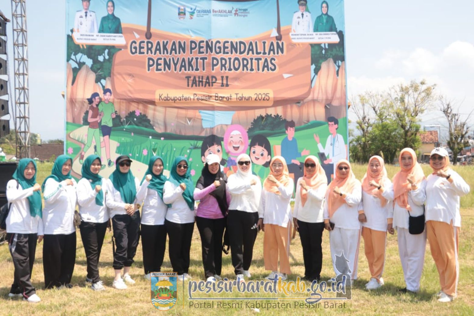 PESISIR BARAT-Asisten II Bidang Perekonomian dan Pembangunan, Sekretariat Pemerintah Kabupaten (Pemkab) Pesisir Barat (Pesibar), Drs. Zukri Amin, M.P., membuka kegiatan gerakan pengendalian penyakit prioritas dan kebugaran jasmani tahap II, di lapangan Komplek Perkantoran Pemkab Pesibar, Kamis (9/10/2025).