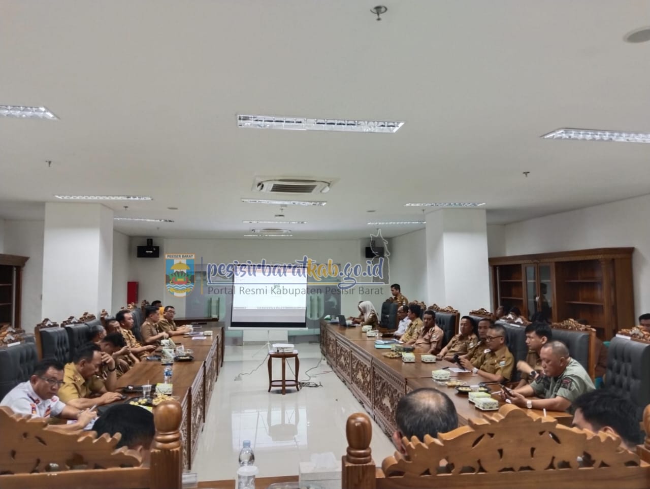PESISIR BARAT-Kepala Dinas Komunikasi, Informatika, Statistik dan Persandian (Diskominfotiksan), Suryadi, S.IP., M.M., menginformasikan bahwa, Asisten II Bidang Perekonomian dan Pembangunan Sekretariat Pemkab Pesibar, Drs. Zukri Amin, M.P., pimpin kegiatan High Level Meeting (HLM) Rapat Koordinasi (Rakor) Tim Pengendalian Inflasi Daerah (TPID) dalam rangka menghadapi bulan suci Ramadhan dan Idul Fitri 1445 Hijriah, di ruang rapat Bupati, Lantai 4 Gedung A Komplek Perkantoran Pemkab Pesibar, Senin (4/3/2024).