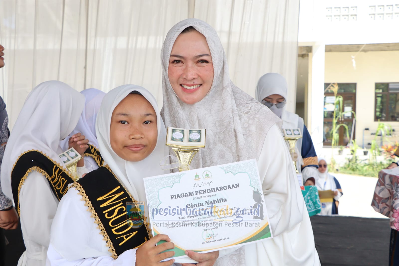 Turut hadir dalam kegiatan tersebut Ketua Tim Penggerak-Pemberdayaan Kesejahteraan Keluarga (TP-PKK), Dian Hardiyanti Dedi, S.ST., M.M., Kepala Dinas Pendidikan dan Kebudayaan (Disdikbud), Edwin Kastolani Burtha, S.H., M.P., Kepala Dinas Pemberdayaan Perempuan Perlindungan Anak dan Keluarga Berencana (DP3AKB), dr. Budi Wiyono, M.H., Plt. Kabag. Kesejahteraan Rakyat Sekretariat Pemkab Pesibar, Arfi Julizar, S.KM., M.M., pimpinan Maqwa IBS, Ustad. Yamin Mahdi, dan para wali murid serta santriwan santriwati.