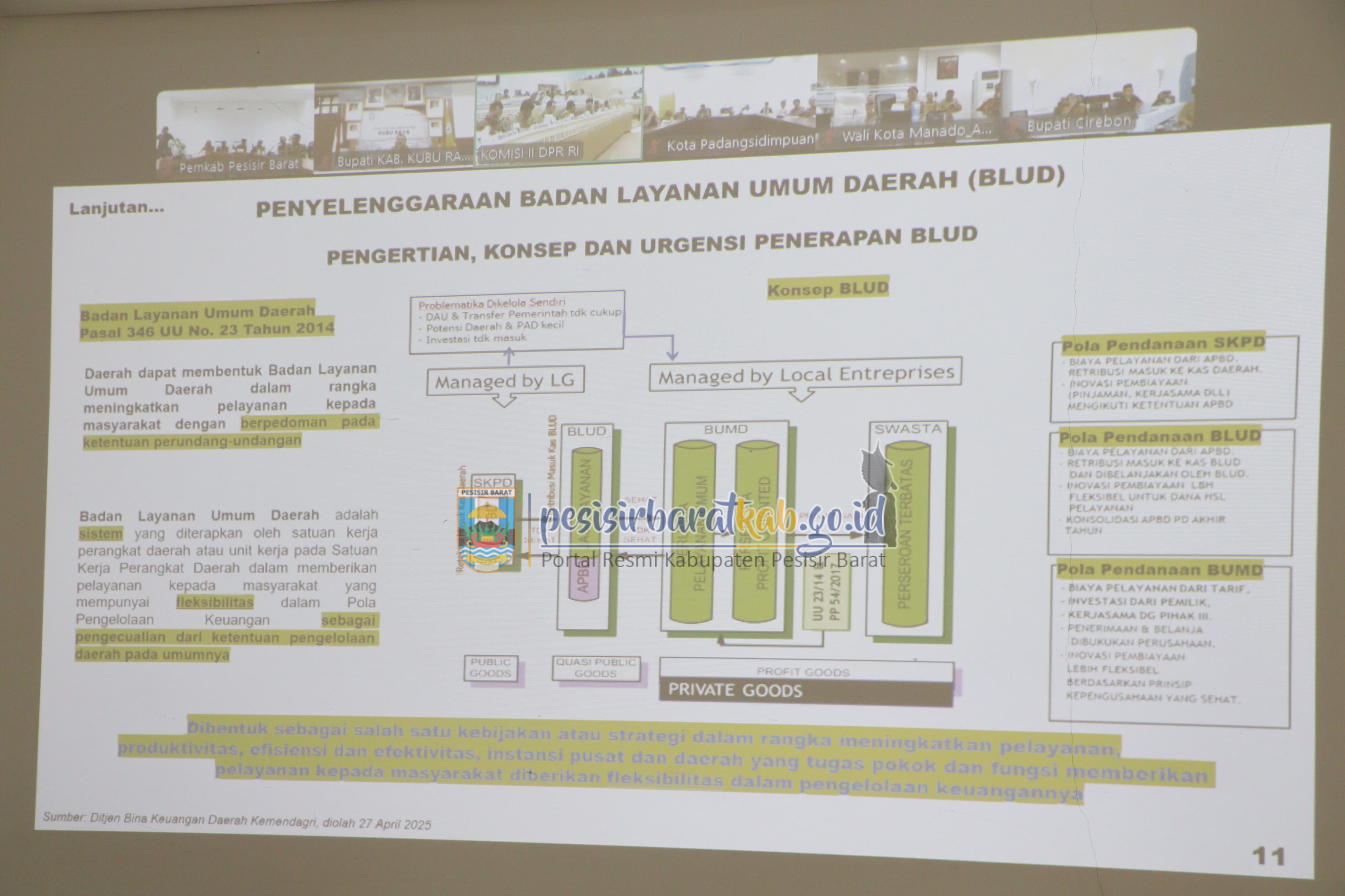 Asisten III, Gunawan melanjutkan, selain itu Wamendagri juga menekankan agar daerah terus meningkatkan penguatan BLUD di masing-masing daerah.