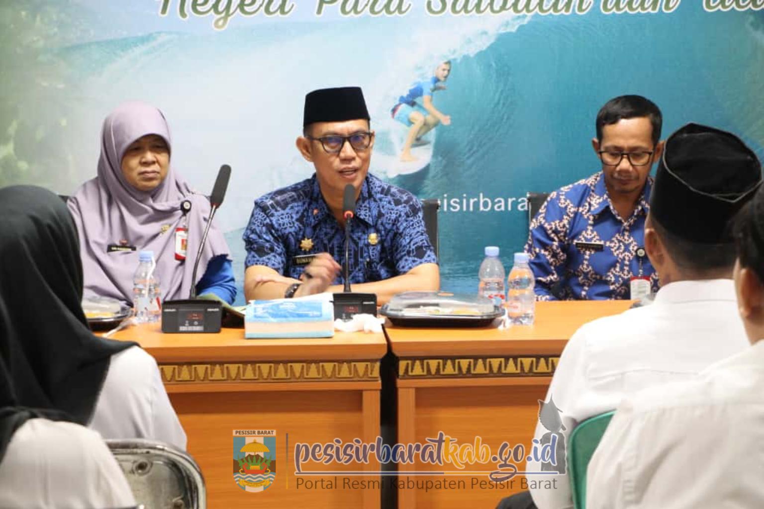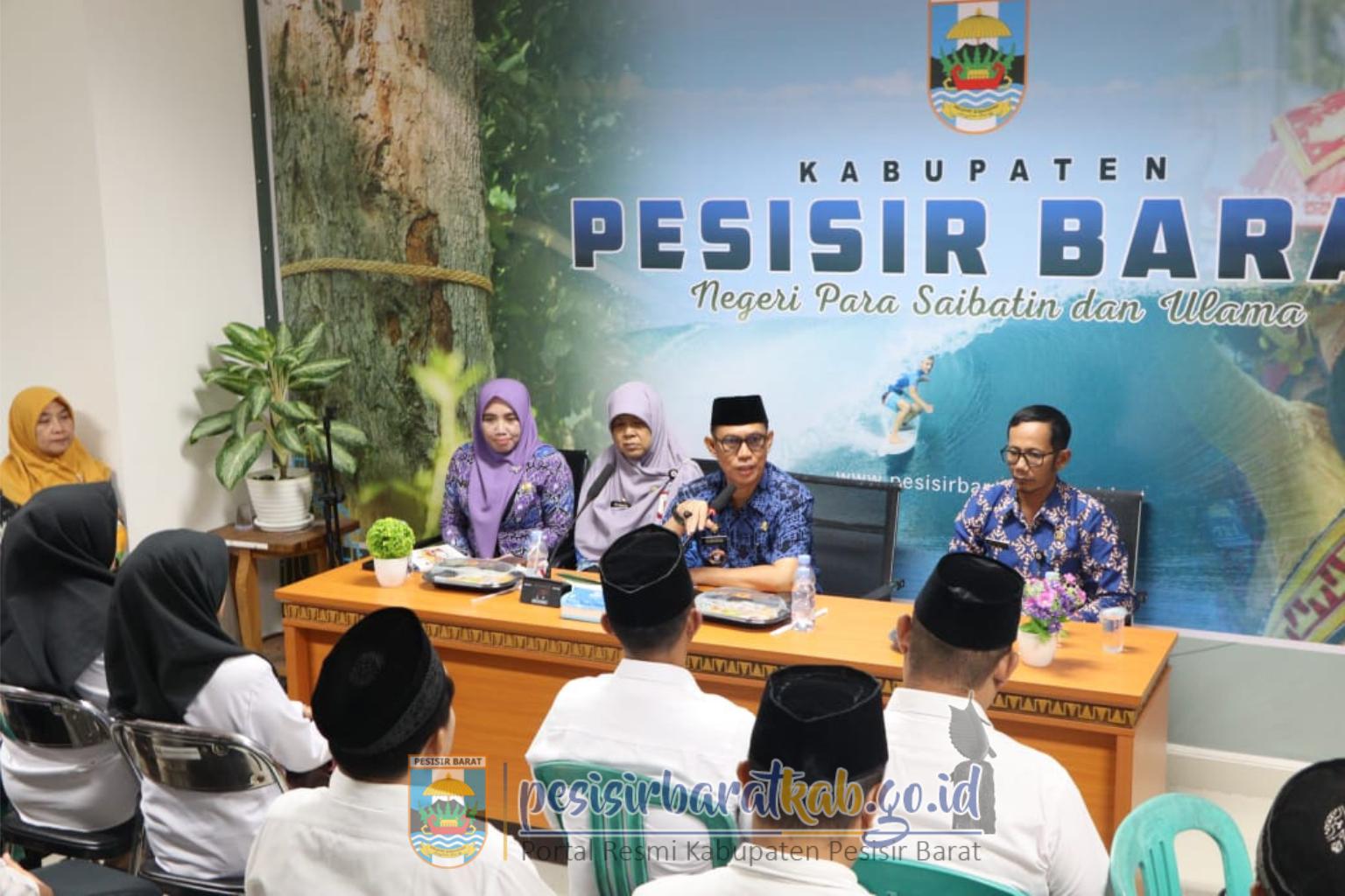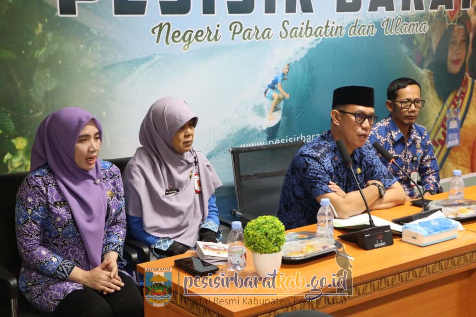 S.KM., M.Kes., dan Plt. Kepala Dinas Sosial (Dinsos), Rena Novasari, S.H., M.M., dari ruang Ngejalang Lantai Gedung Marga Sai Batin Komplek Perkantoran Pemkab Pesibar.