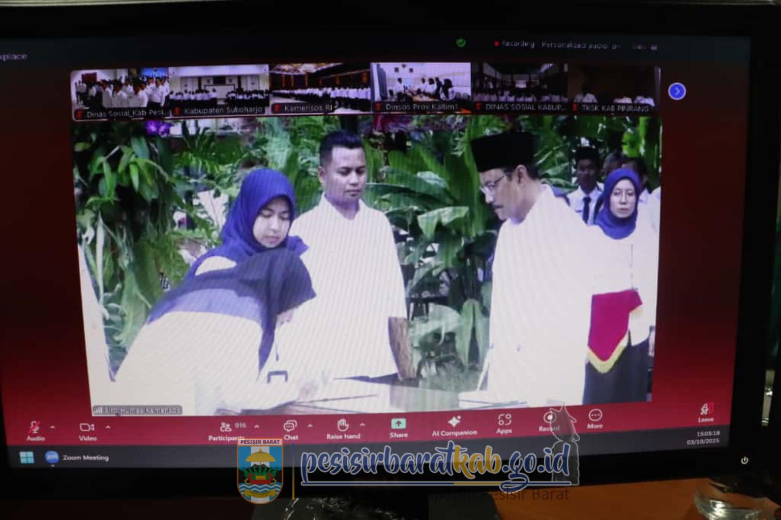PESISIR BARAT-Sebanyak 26 pendamping Program Keluarga Harapan (PKH) dan enam Tenaga Kesejahteraan Sosial Kecamatan (TKSK) Kabupaten Pesisir Barat (Pesibar) resmi dilantik sebagai Pegawai Pemerintah dengan Perjanjian Kerja (PPPK) di lingkungan Kementerian Sosial (Kemensos) Republik Indonesia, Jumat (3/10/2025).