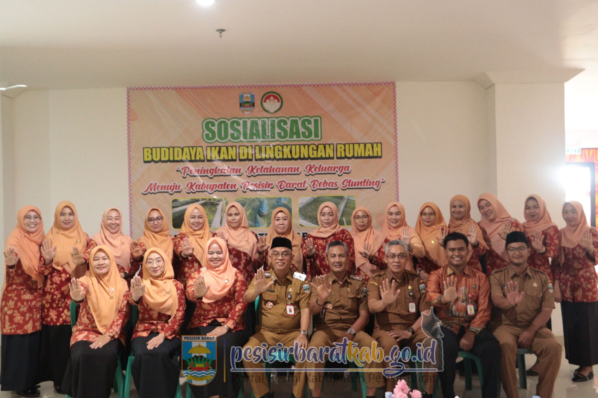 PESISIR BARAT-Penasihat Darma Wanita Persatuan (DWP) Kabupaten Pesisir Barat (Pesibar), Dea Derika Topani, S.H., M.Kn., membuka kegiatan sosialisasi budidaya ikan di lingkungan rumah, yang berlangsung di Lobi Teluk Stabas Lantai 1 Gedung Marga Sai Batin Komplek Perkantoran Pemkab Pesibar, Selasa (21/10/2025).