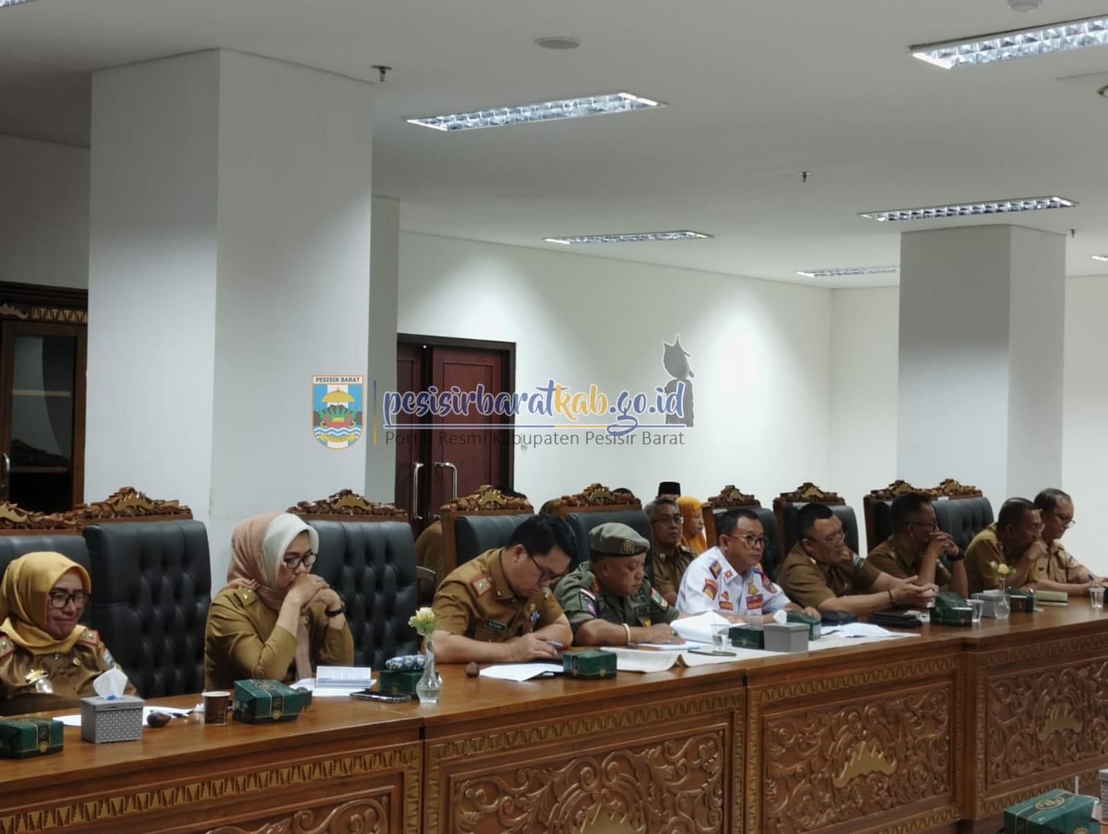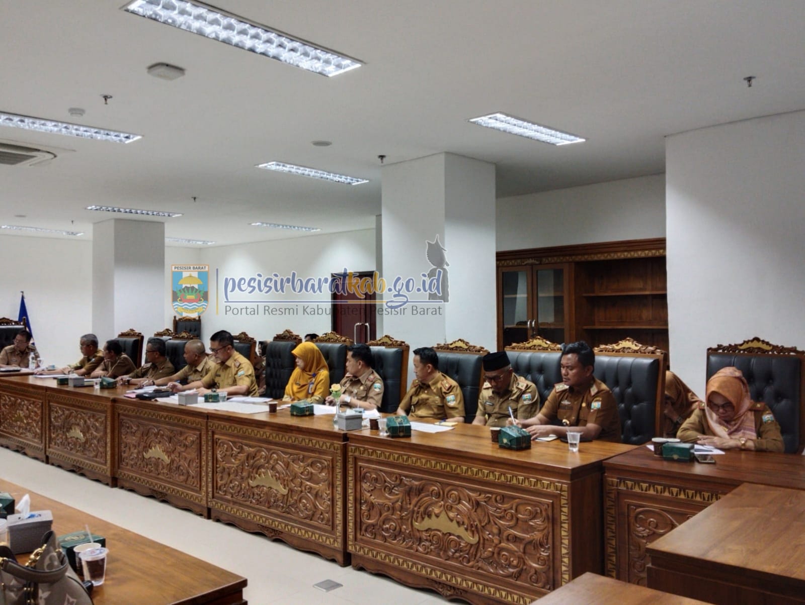PESISIR BARAT-Kepala Dinas Komunikasi, Informatika, Statistik dan Persandian (Diskominfotiksan), Suryadi, S.IP., M.M., menginformasikan bahwa, Bupati Pesisir Barat (Pesibar), Dr. Drs. Agus Istiqlal, S.H., M.H., membuka sekaligus memimpin Rapat Koordinasi Bulanan (Rakoor) di Lingkungan Pemerintah Kabupaten (Pemkab) Pesisir Barat (Pesibar), di ruang rapat Bupati, Lantai 4 Gedung A Komplek Perkantoran Pemkab Pesibar, Selasa (2/7/2024).