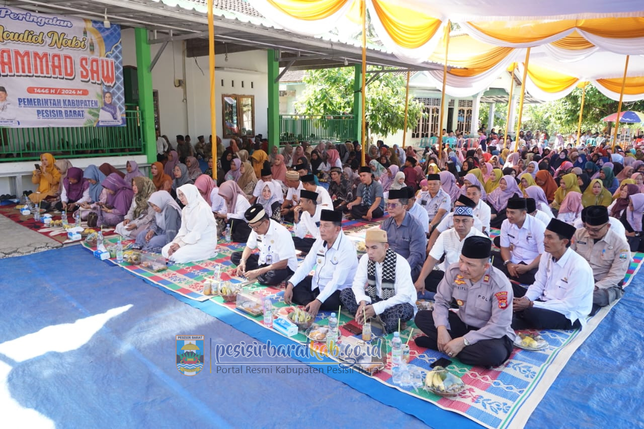 PESISIR BARAT-Kepala Dinas Komunikasi, Informatika, Statistik dan Persandian (Diskominfotiksan), Suryadi, S.IP., M.M., menginformasikan bahwa, Bupati Pesisir Barat (Pesibar), Dr. Drs. Agus Istiqlal, S.H., M.H., menghadiri peringatan Maulid Nabi Muhammad SAW 1446 Hijriah di Masjid Almuntoha Pemangku Sukoharjo Pekon Pemerihan Kecamatan Bangkunat, Kamis (19/9/2024).