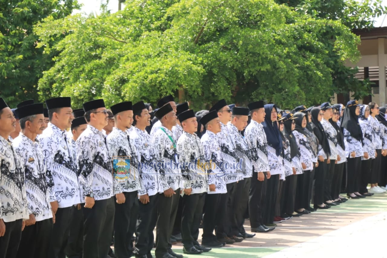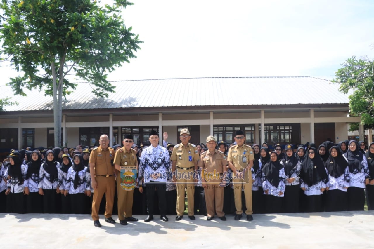 BUPATI AGUS ISTIQLAL PIMPIN UPACARA PERINGATAN HUT PGRI KE-79 DAN HARI GURU NASIONAL DI SMPN 9 KRUI