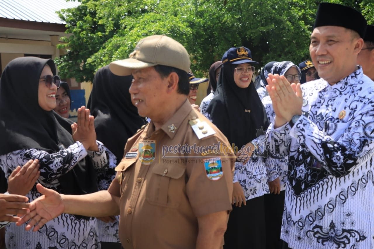 PESISIR BARAT-Kepala Dinas Komunikasi, Informatika, Statistik dan Persandian (Diskominfotiksan), Suryadi, S.IP., M.M., menginformasikan bahwa, Bupati Pesisir Barat (Pesibar), Dr. Drs. Agus Istiqlal, S.H., M.H., menghadiri sekaligus memimpin upacara peringatan Hari Ulang Tahun (HUT) Persatuan Guru Republik Indonesia (PGRI) ke-79 dan Hari Guru Nasional dengan tema Guru Hebat Indonesia Kuat, di SMPN 9 Krui Kecamatan Ngambur, Selasa (26/11/2024).