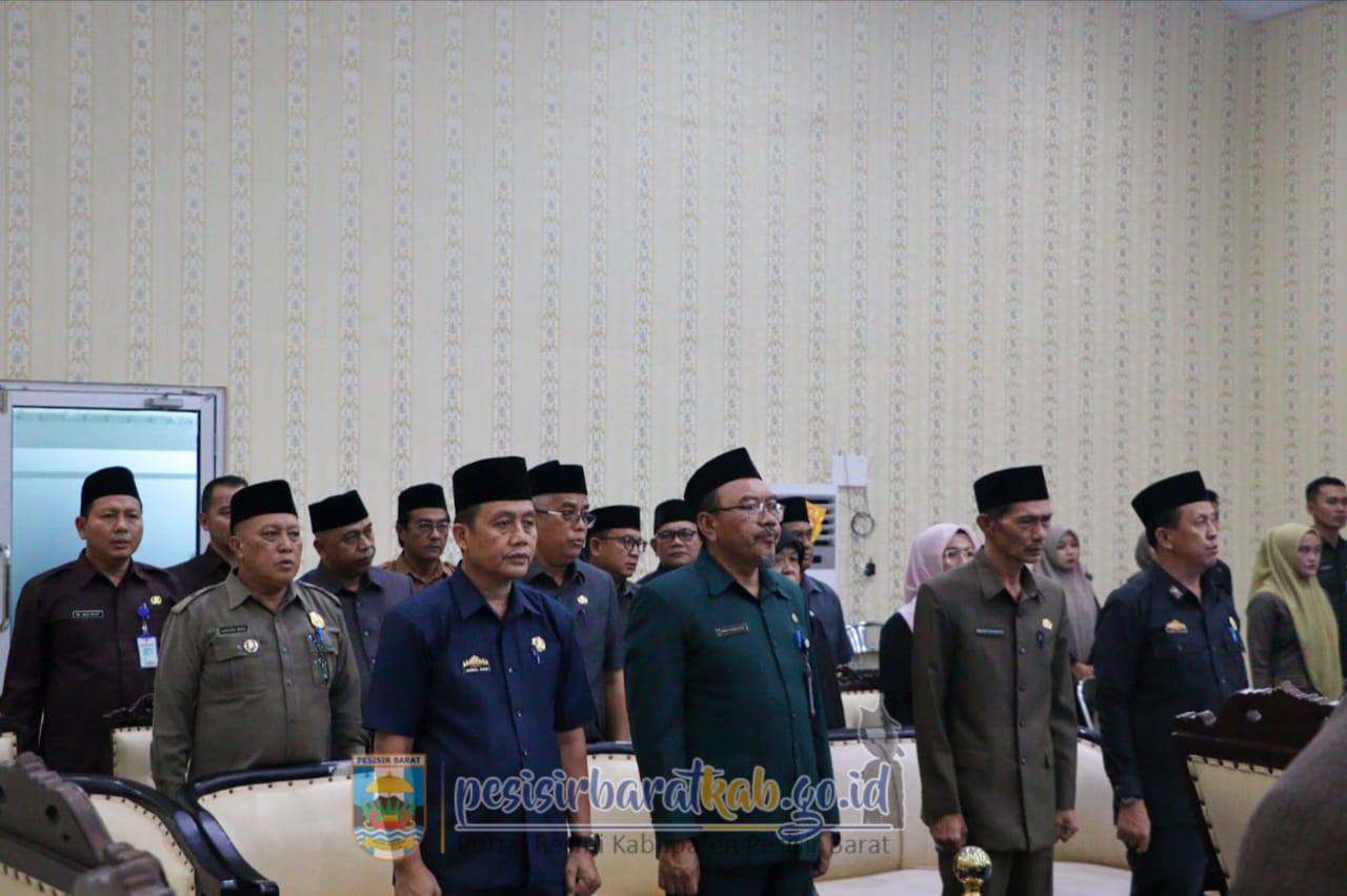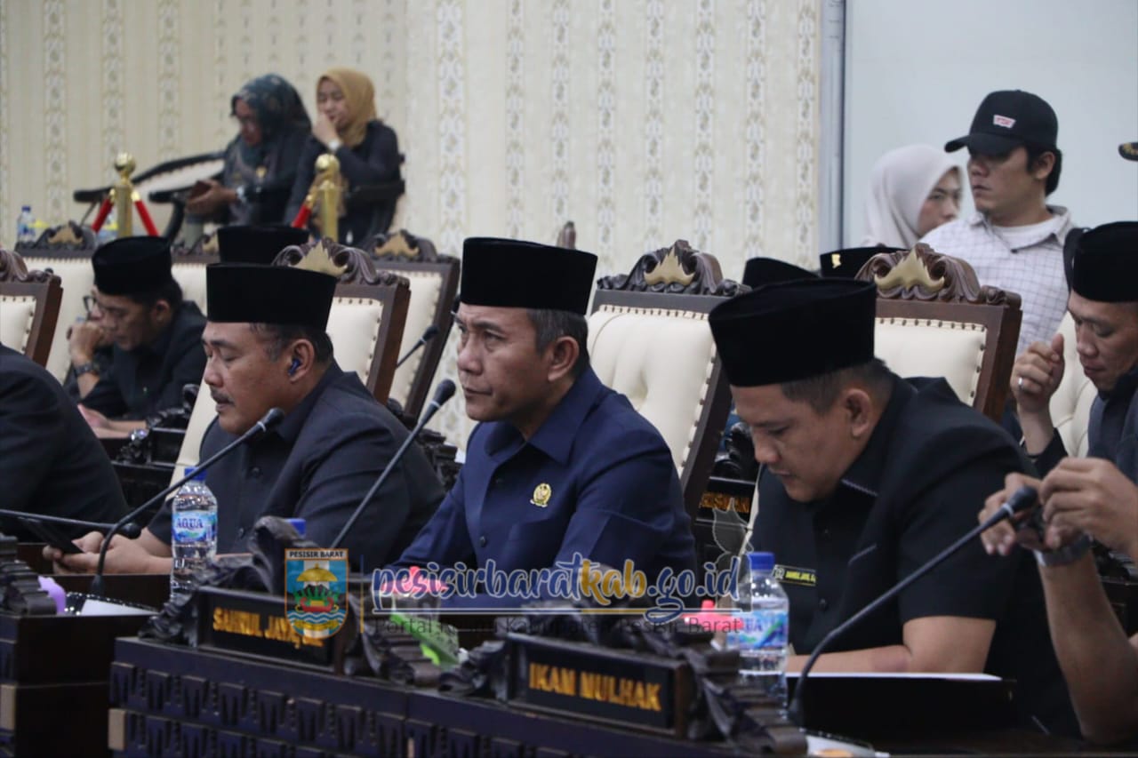 PESISIR BARAT – Bupati Pesisir Barat (Pesibar) Dedi Irawan bersama Wakil Bupati Irawan Topani, S.H., M.Kn., menghadiri Rapat Paripurna Dewan Perwakilan Rakyat Daerah (DPRD) Pesibar dengan agenda penyampaian nota pengantar Kebijakan Umum Anggaran dan Prioritas Plafon Anggaran Sementara (KUA-PPAS) APBD Tahun Anggaran 2026, Selasa (12/8/2025).