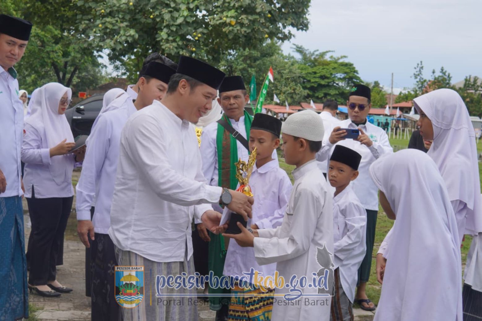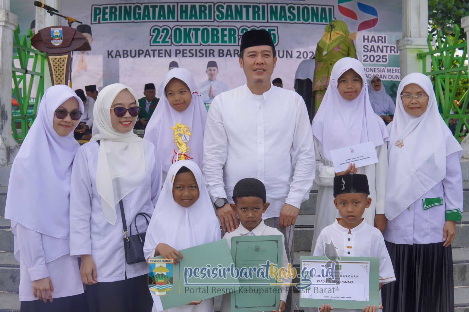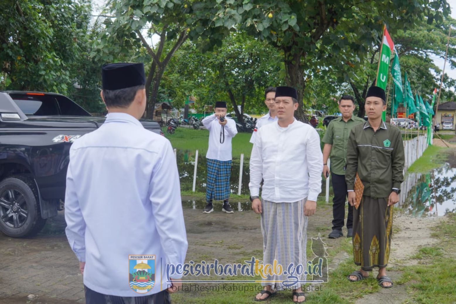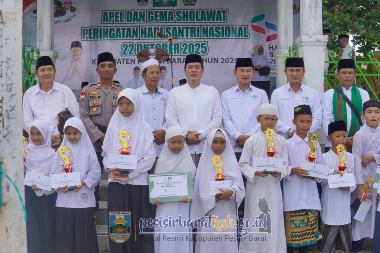 PESISIR BARAT-Bupati Pesisir Barat (Pesibar), Dedi Irawan menghadiri apel peringatan Hari Santri Nasional Tahun 2025, di Lapangan Merdeka Labuhan Jukung Kecamatan Pesisir Tengah, Rabu (22/10/2025).
