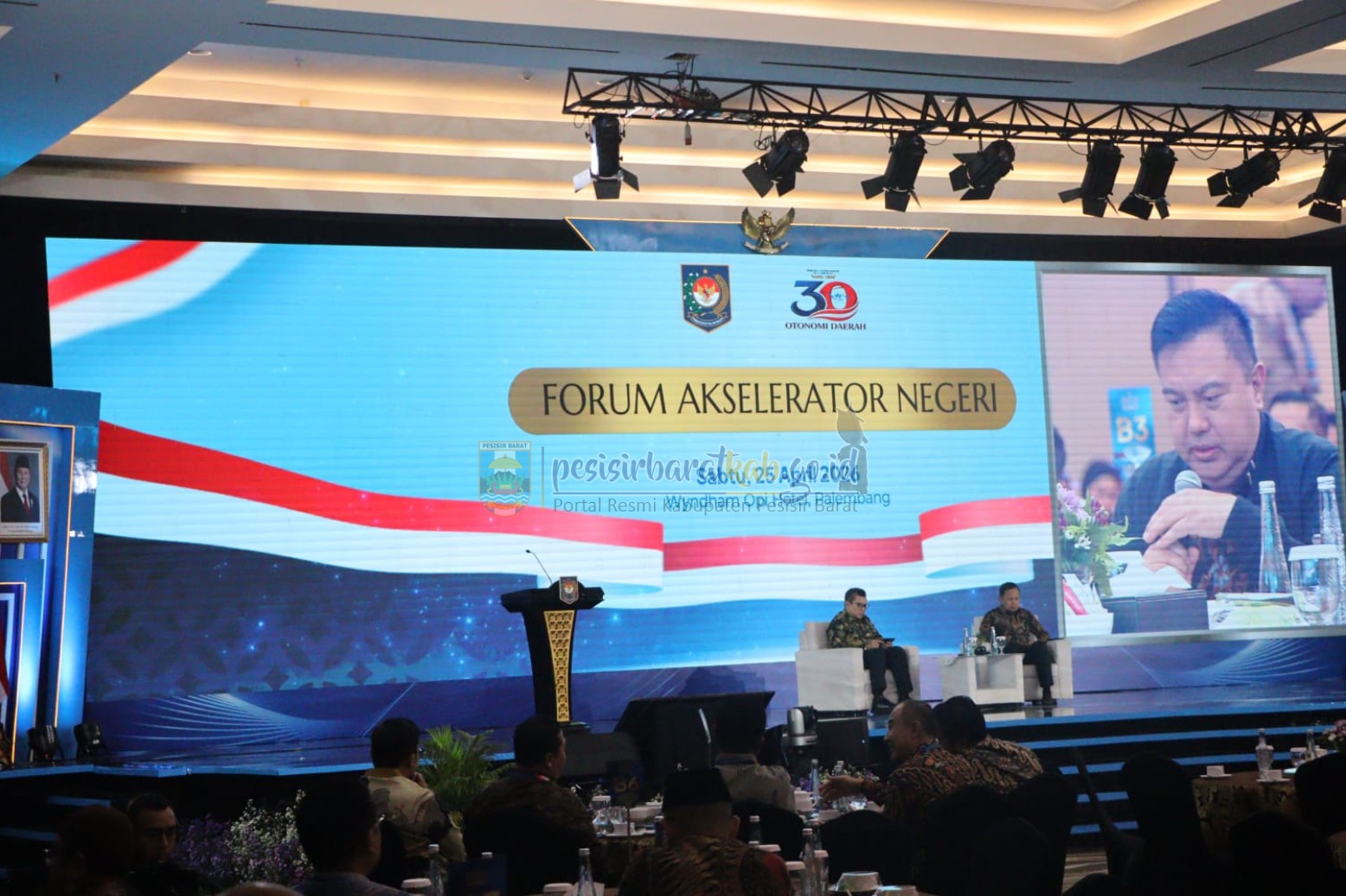 PESISIR BARAT – Bupati Pesisir Barat, Dedi Irawan, menghadiri Forum Akselerator Negeri dan Apresiasi Pemerintah Daerah Berprestasi Tahun 2026 yang digelar di Wyndham OPI Hotel, Palembang, Sumatera Selatan, Sabtu (25/4/2026). Kegiatan tersebut bertujuan menciptakan iklim kompetitif guna mendorong optimalisasi kinerja pemerintah daerah di seluruh Indonesia.