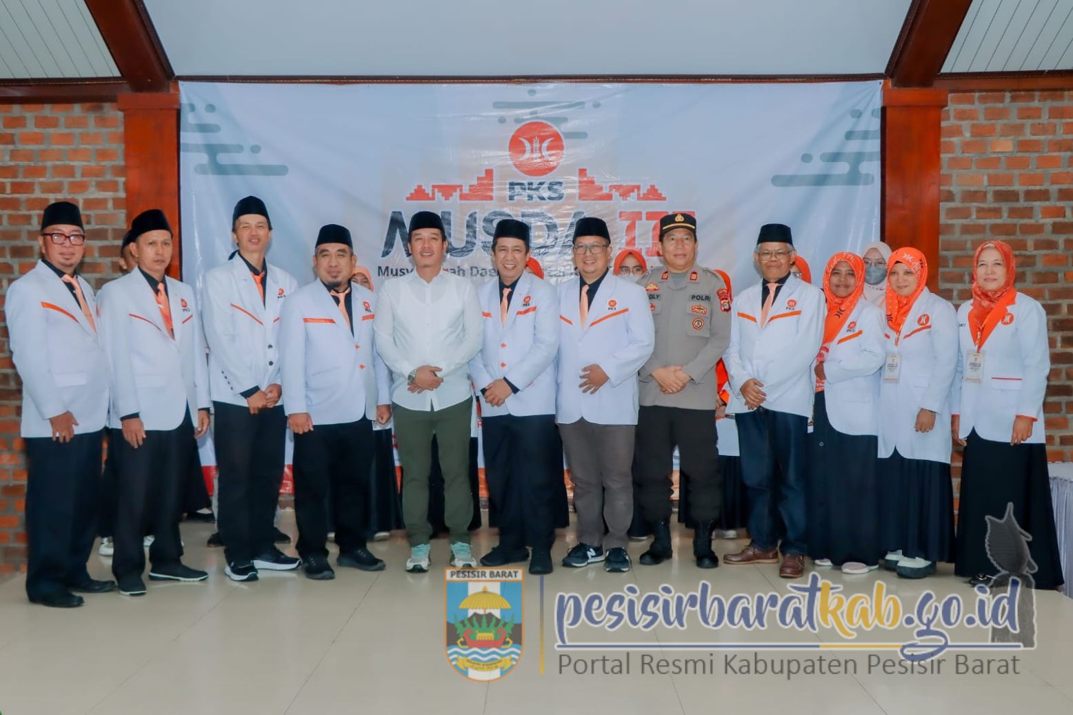 PESISIR BARAT-Bupati Pesisir Barat (Pesibar), Dedi Irawan, menghadiri Musyawarah Daerah (Musda) III Partai Keadilan Sejahtera (PKS) Pesibar, di Aula Sartika Krui, Jl Pantai Wisata, Seray, Kec. Pesisir Tengah, Kabupaten Pesisir Barat, Lampung, Sabtu (6/9/2025).