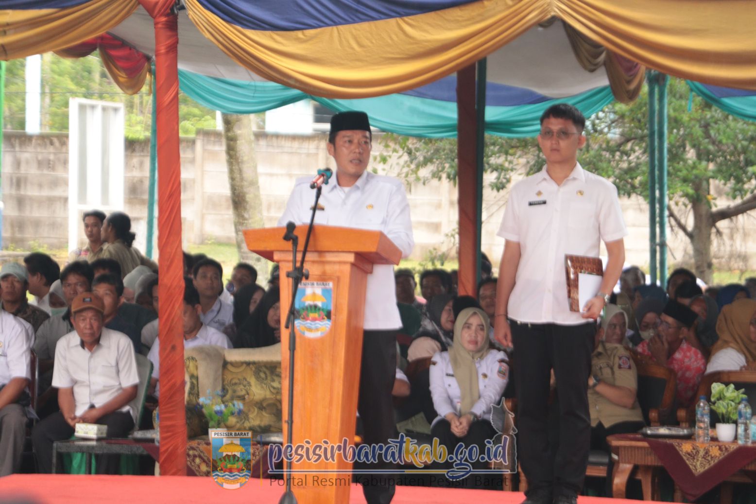 PESISIR BARAT-Bupati Pesisir Barat (Pesibar), Dedi Irawan, mengukuhkan anggota Kampung Siaga Bencana (KSB) Pesibar Tahun 2025, di halaman sekretariat Kecamatan Krui Selatan, Rabu (29/10/2025).