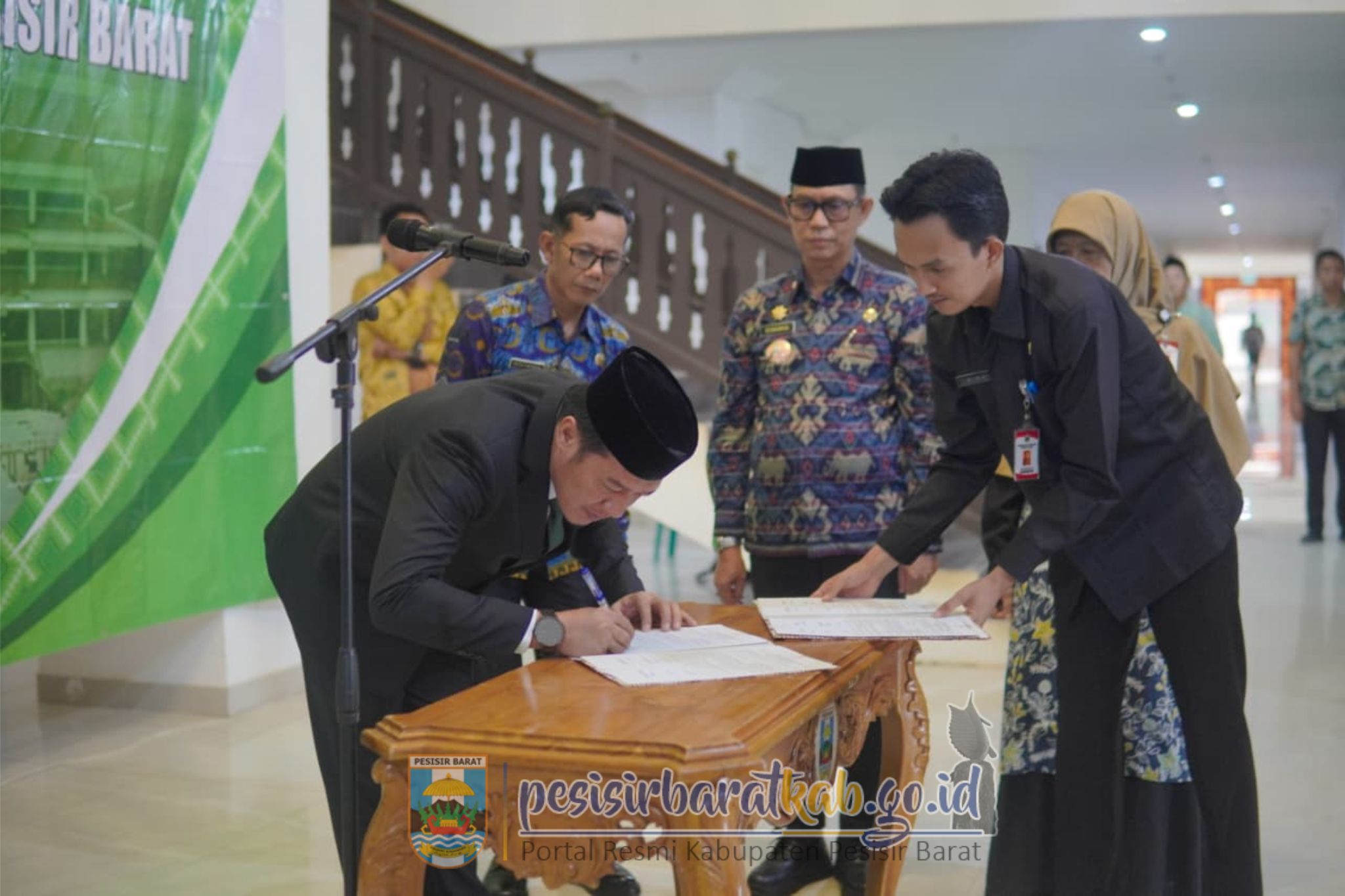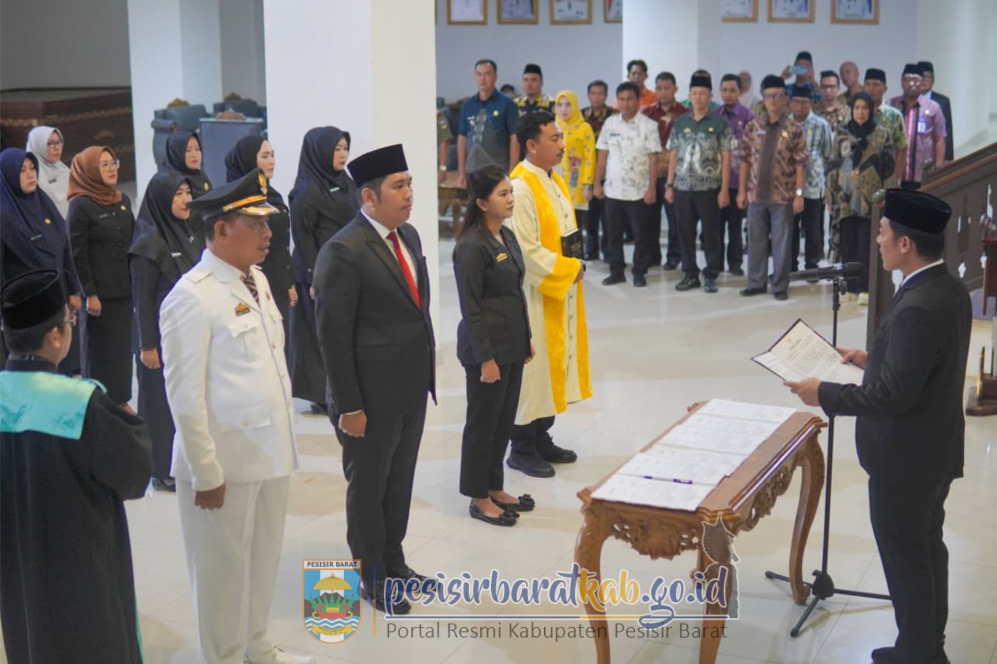 PESISIR BARAT-Bupati Pesisir Barat (Pesibar), Dedi Irawan resmi melantik 21 pejabat administrator dan pengawas di lingkungan Pemkab Pesibar, yang dilangsungkan di Lobi Teluk Stabas Gedung Marga Sai Batin Komplek Perkantoran Pemkab Pesibar, Kamis (23/10/2025).