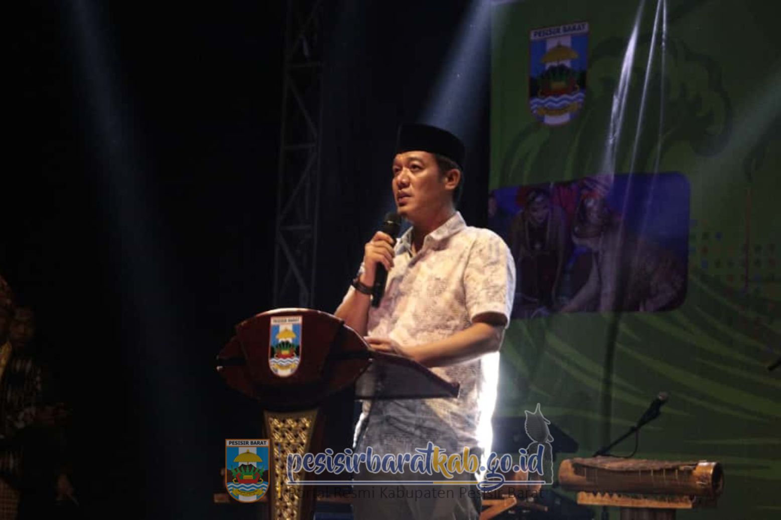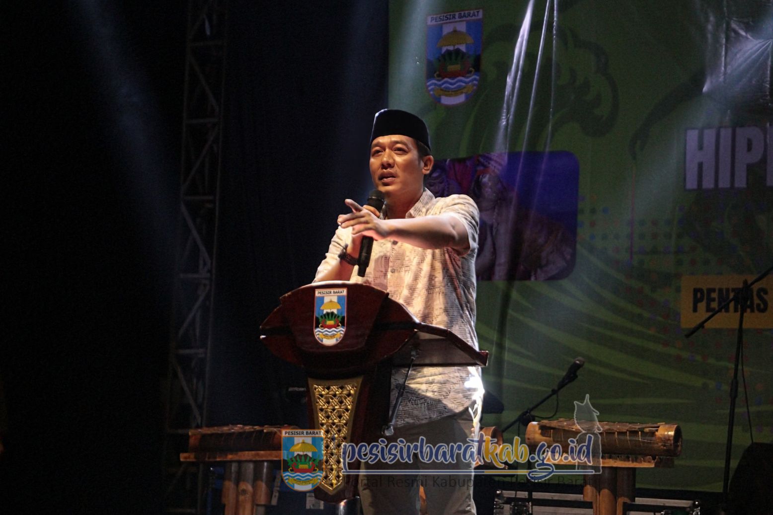 PESISIR BARAT-Bupati Pesisir Barat (Pesibar), Dedi Irawan, resmi menutup gelaran Himpunan Pengusaha Muda Indonesia (HIPMI) Festival Budaya 2025, di Lapangan Merdeka Labuhan Jukung Kecamatan Pesisir Tengah, Sabtu (25/10/2025) malam.