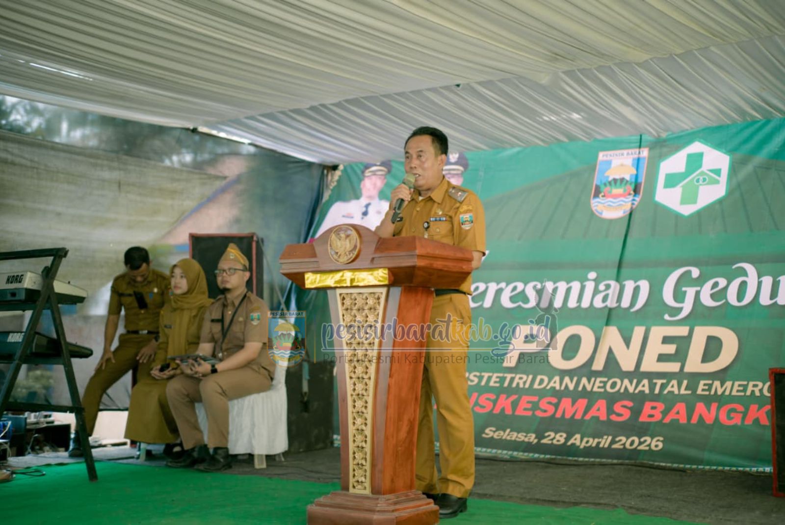 PESISIR BARAT – Bupati Pesisir Barat, Dedi Irawan, didampingi Wakil Bupati Irawan Topani, secara resmi meresmikan Pelayanan Obstetri Neonatal Emergensi Dasar (PONED) di UPTD Puskesmas Kecamatan Bangkunat, Selasa (28/4/2026).