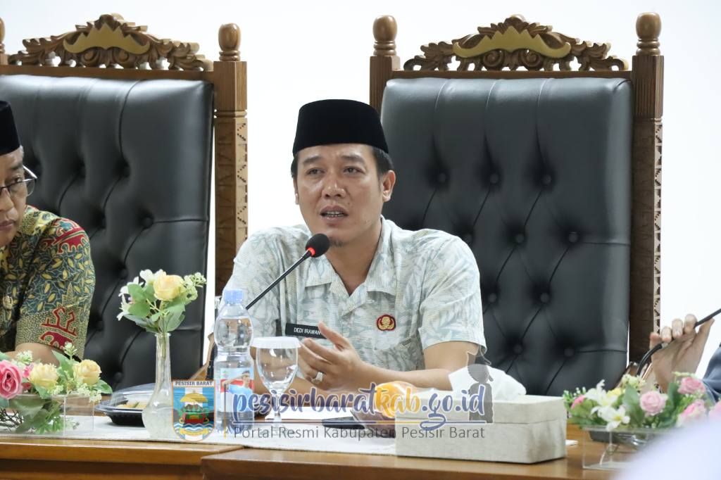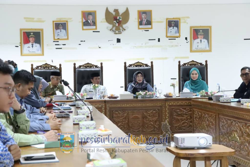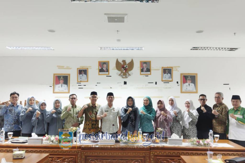 PESISIR BARAT-Bupati Pesisir Barat (Pesibar), Dedi Irawan, menyambut audiensi Perwakilan Badan Kependudukan dan Keluarga Berencana Nasional (BKKBN) Provinsi Lampung, di ruang rapat Payung Agung Lantai 4 Komplek Perkantoran Pemkab Pesibar, Jumat (12/9/2025).