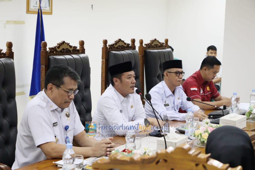 PESISIR BARAT-Kepala Dinas Komunikasi Informatika Statistik dan Persandian Kabupaten Pesisir Barat Suryadi, S.IP., M.M., menginformasikan bahwa, Bupati Pesisir Barat (Pesibar), Dedi Irawan, menerima kunjungan Kerja (Kunker) Badan Narkotika Nasional (BNN) Provinsi Lampung, di ruang rapat Bupati Lantai 4 Gedung Marga Sai Batin Komplek Perkantoran Pemkab Pesibar, Rabu (30/4/2025).