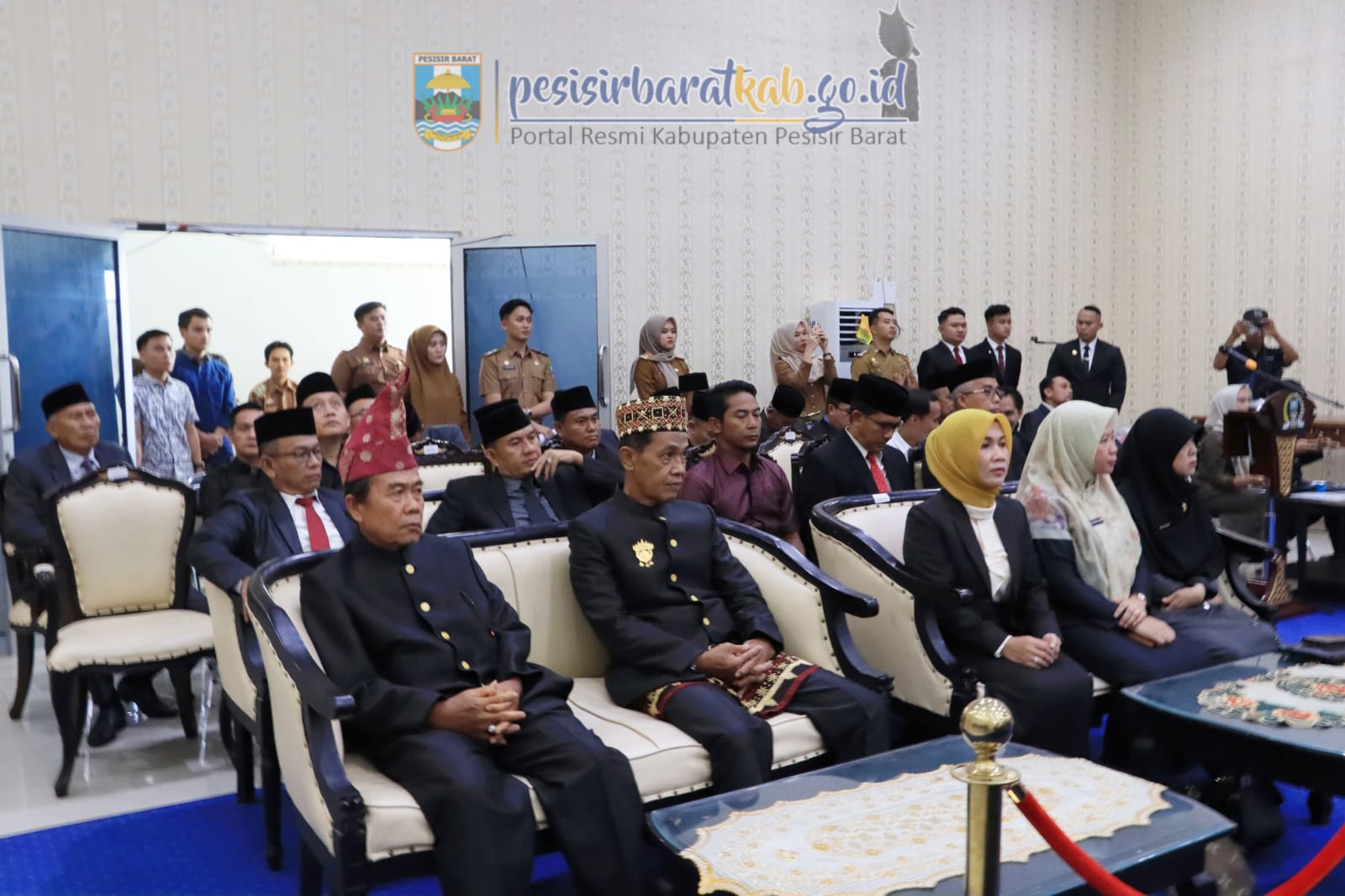 PESISIR BARAT-Kepala Dinas Komunikasi, Informatika, Statistik, dan Persandian (Diskominfotiksan) Suryadi, S.IP., M.M., menginformasikan bahwa, Bupati - Wakil Bupati Pesisir Barat (Pesibar), Dedi Irawan - Irawan Topani, S.H., M.Kn., menghadiri Rapat Paripurna Dewan Perwakilan Rakyat Daerah (DPRD) dengan agenda mendengar pidato pertama Bupati Pesibar masa jabatan 2025-2030, di ruang rapat paripurna DPRD Pesibar, Selasa (4/3/2025).