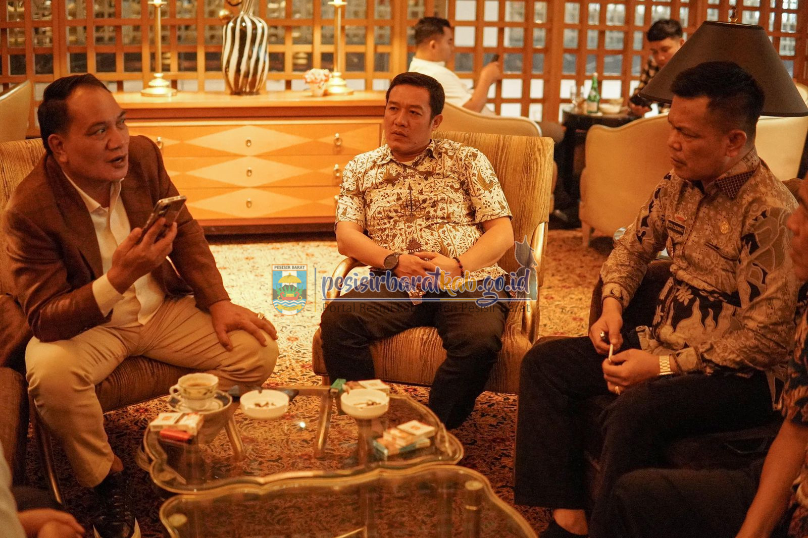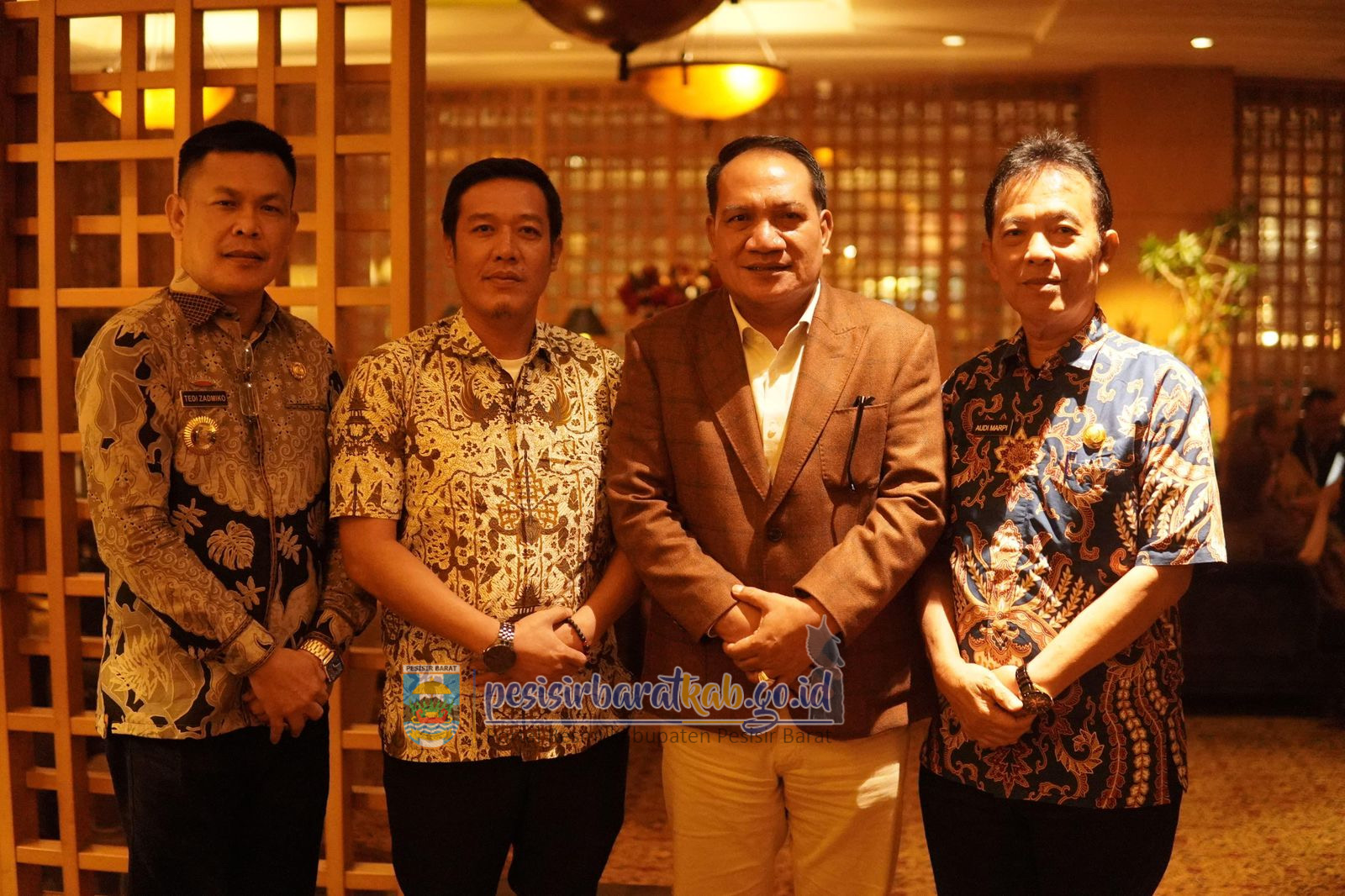 PESISIR BARAT-Kepala Dinas Komunikasi Informatika Statistik dan Persandian Kabupaten Pesisir Barat Suryadi, S.IP., M.M., menginformasikan bahwa, Bupati Pesisir Barat (Pesibar), Dedi Irawan, bersilaturahmi ke anggota Komisi VIII Dewan Perwakilan Rakyat-Republik Indonesia (DPR-RI), H. Aprozi Alam, S.E., di Hotel Mulia Senayan, Jakarta, Kamis (15/5/2025).