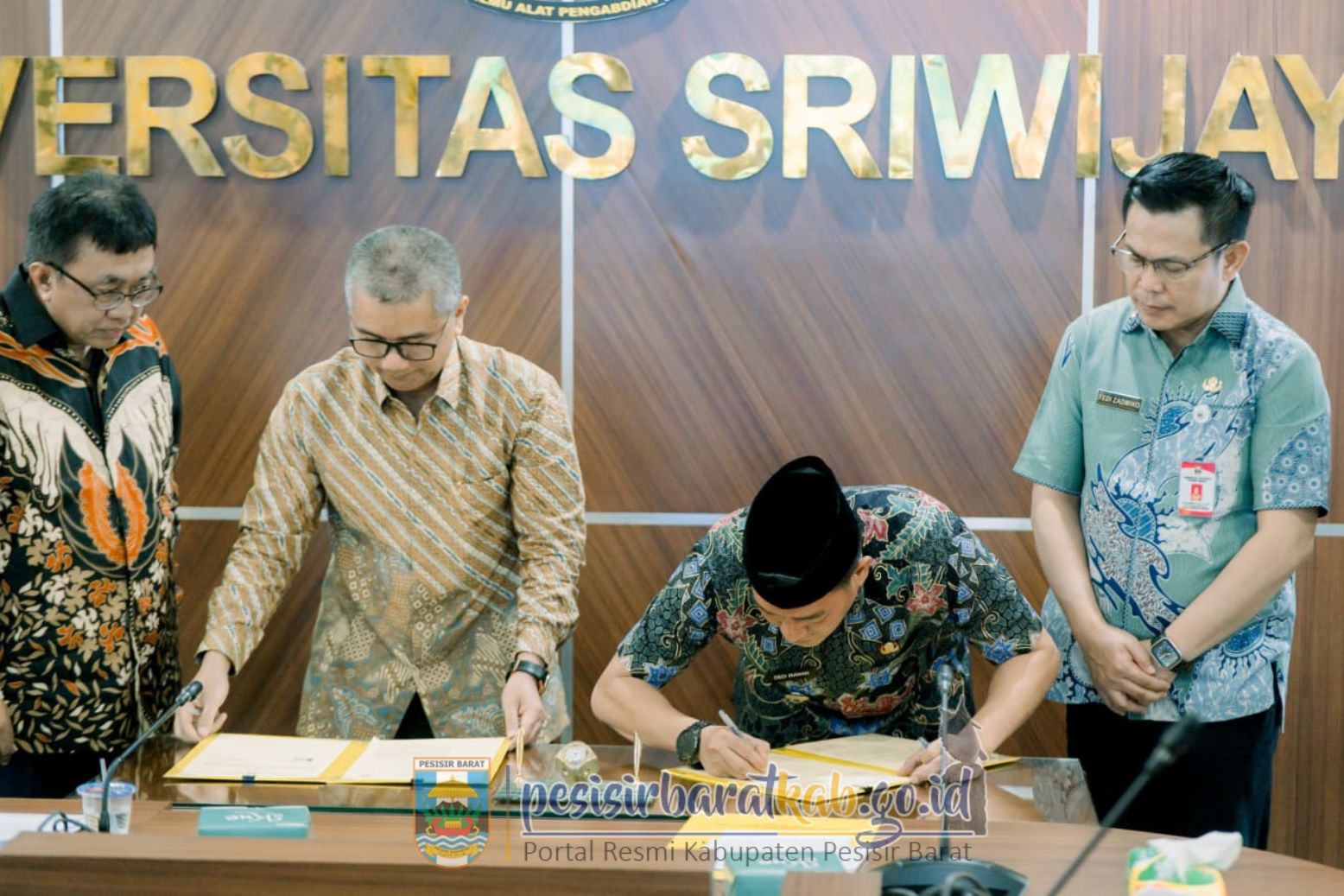 PESISIR BARAT-Bupati Pesisir Barat (Pesibar), Dedi Irawan, resmi menandatangani Memorandum of Understanding (MoU) dengan Universitas Sriwijaya (Unsri) tentang pemenuhan kebutuhan dokter spesialis di Rumah Sakit Umum Daerah (RSUD) KH. Muhammad Thohir, di Palembang, Jumat (3/10/2025).