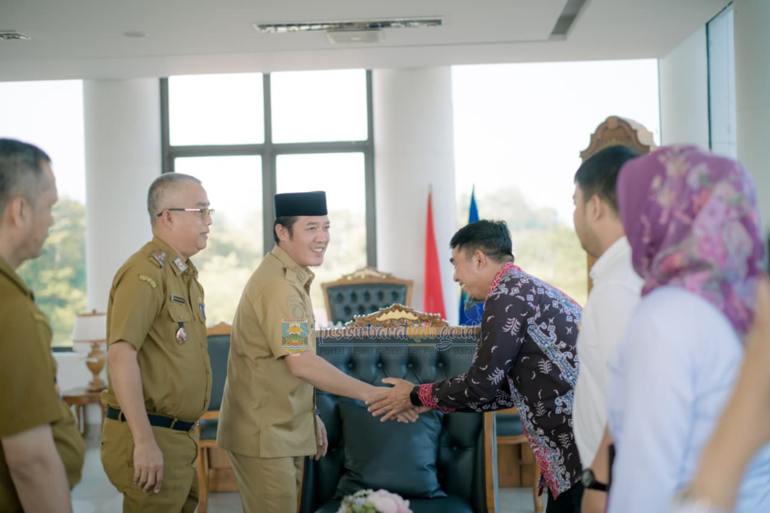 PESISIR BARAT – Bupati Pesisir Barat, Dedi Irawan, menerima audiensi dengan Badan Penyelenggara Jaminan Produk Halal (BPJPH) Provinsi Lampung di Ruang Rapat Bupati, Lantai 5, Selasa (28/4/2026).