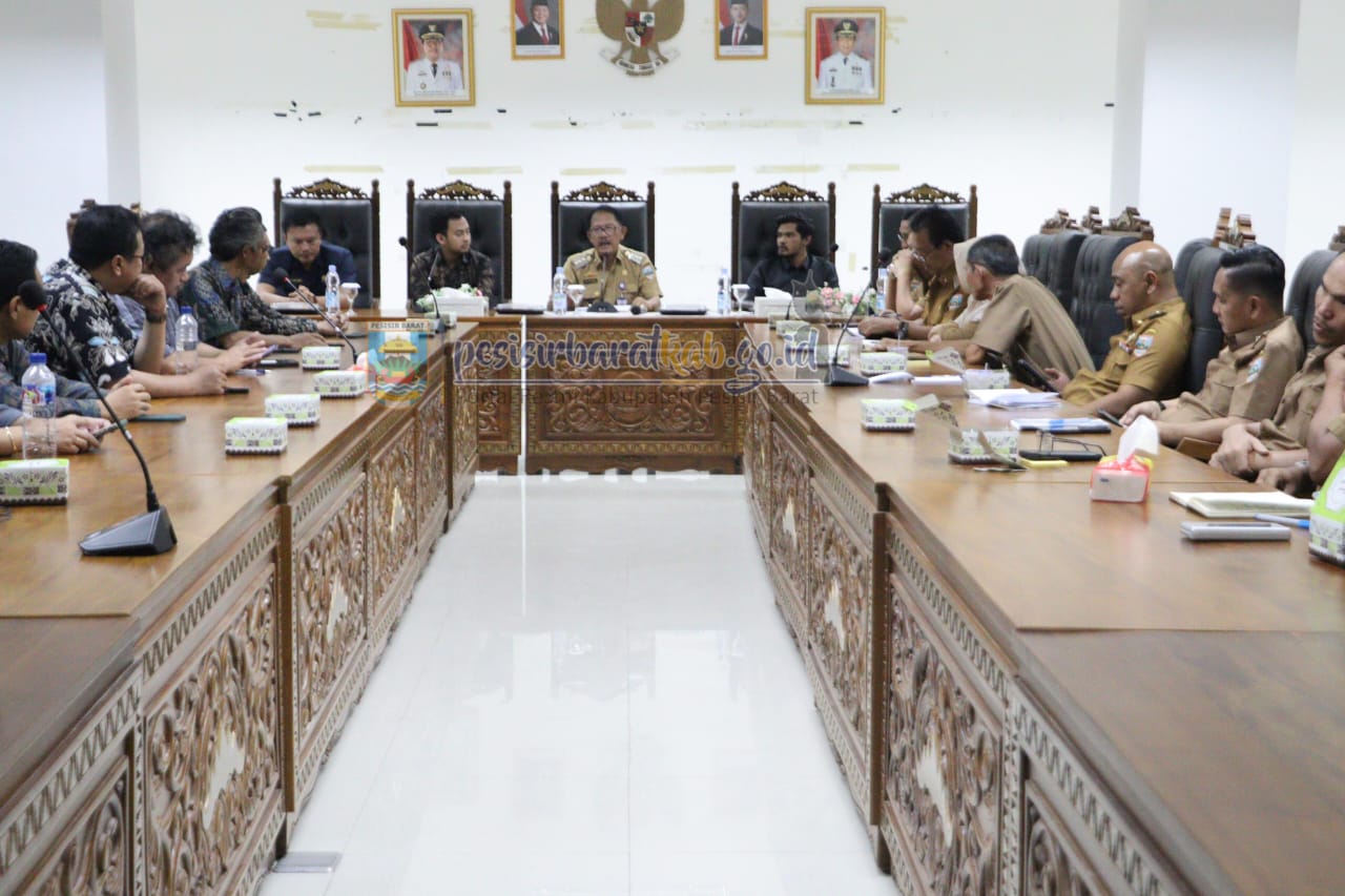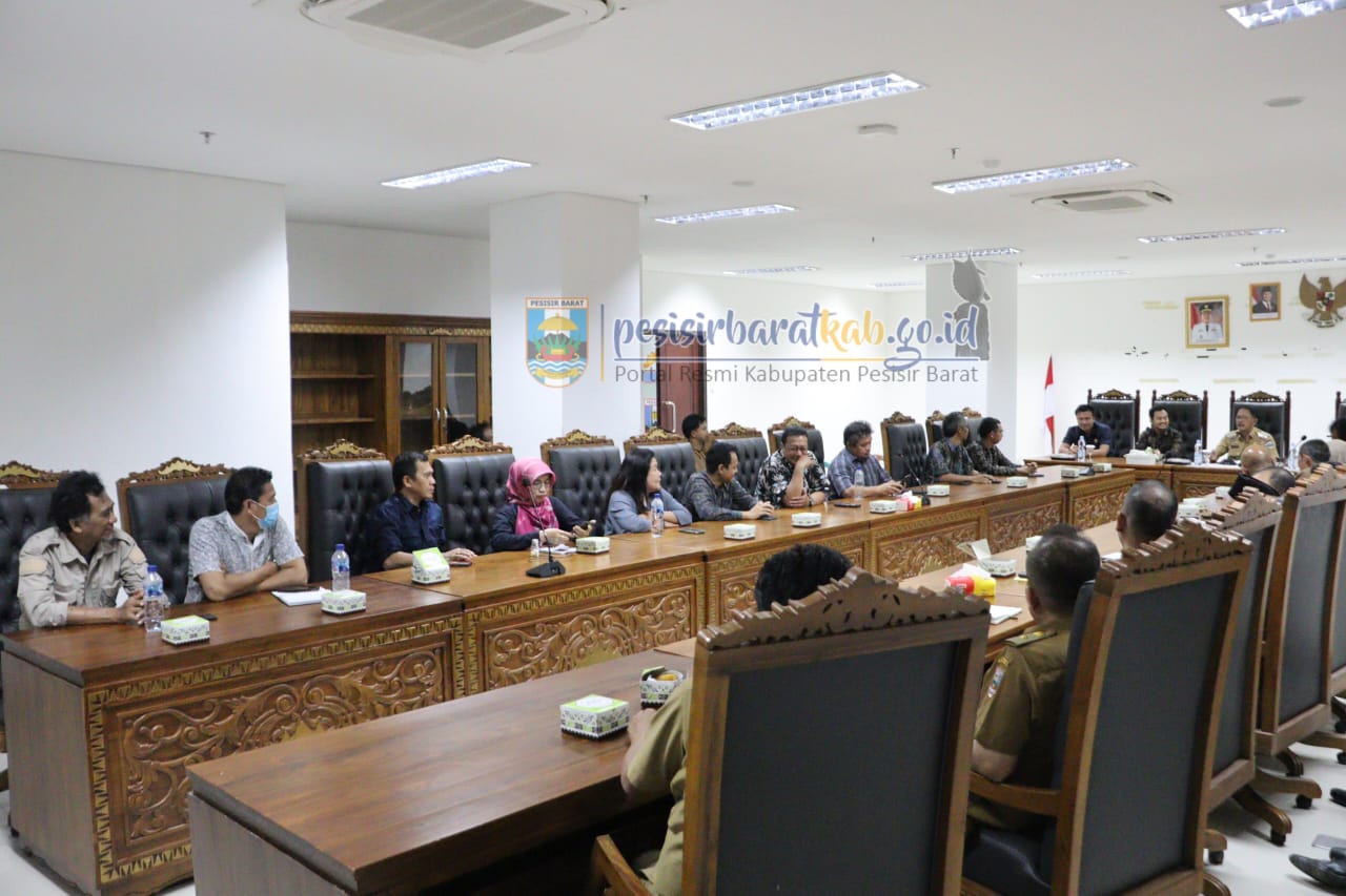 Pesisirbarat, Kepala dinas Kominfotiksan Suryadi, S.IP.,MM menginformasikan bahwa bupati pesisir Barat Dr, Drs, Agus Istiqlal,SH.,MH di damping Plt Sekda Drs, Jon Edwar, M.Pd. menghadiri rapat bersama tim teknis kementerian kesehatan terkait pembangunan rumah sakit tipe C di ruang rapat Bupati Gedung A Lantai 4, Selasa (21/01/2025)