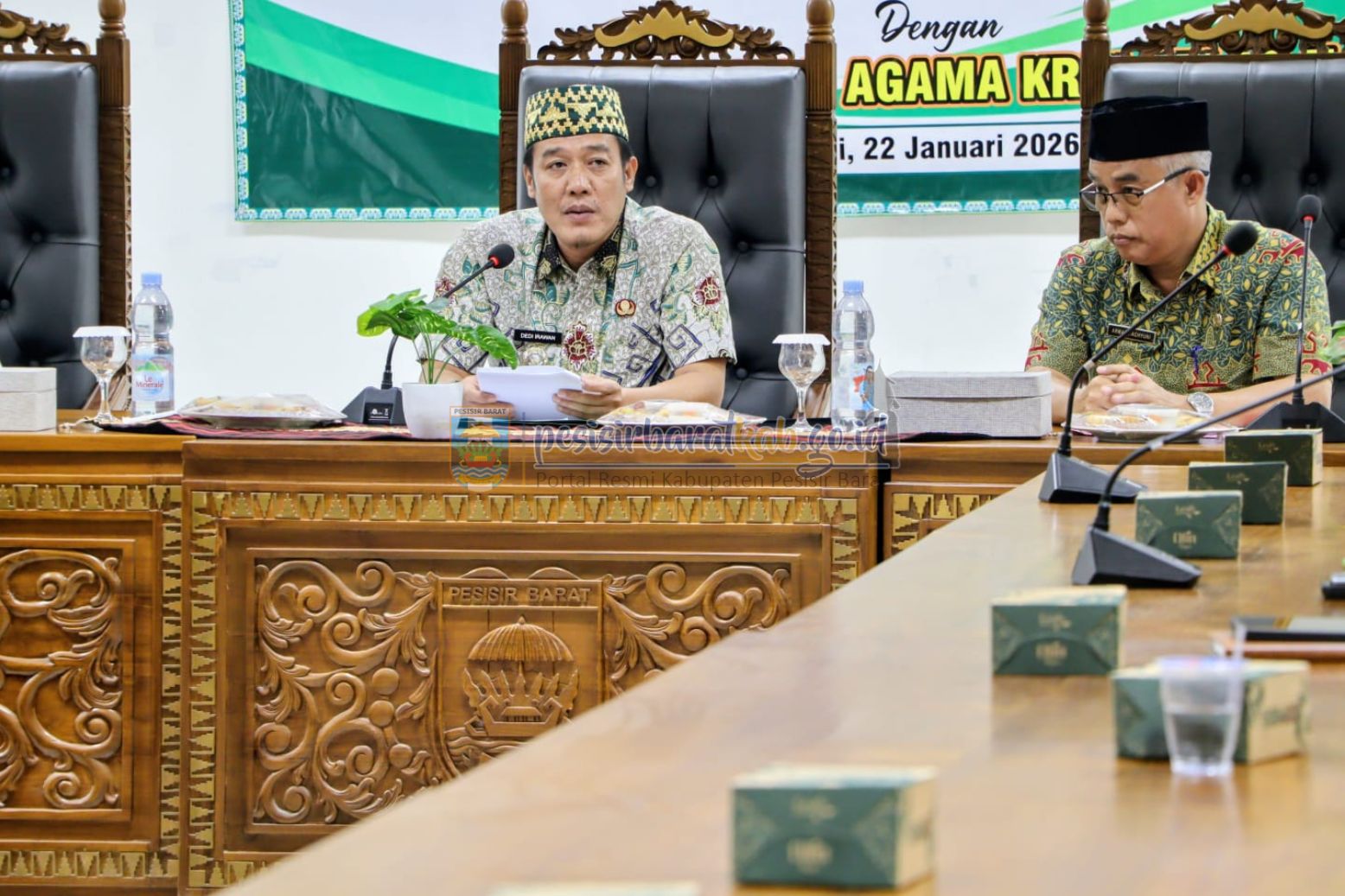 PESISIR BARAT — Bupati Pesisir Barat Dedi Irawan menghadiri penandatanganan Nota Kesepakatan (MoU) antara Pengadilan Agama Krui Kelas II dan Pemerintah Kabupaten Pesisir Barat, Kegiatan berlangsung di Ruang Rapat Payung Agung, Lantai 4 Gedung Marga Sai Batin, Kamis (22 Januari 2026).