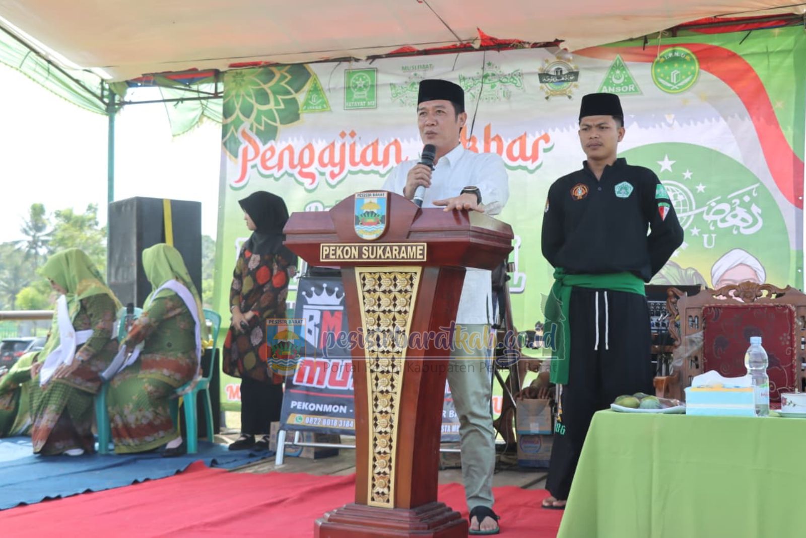PESISIR BARAT – Bupati Pesisir Barat, Dedi Irawan, menghadiri kegiatan Pengajian Akbar, Halal Bihalal, dan Silaturahmi pasca Idul Fitri 1447 Hijriah yang digelar di Lapangan Kecamatan Ngaras, Sabtu (4/4/2026).