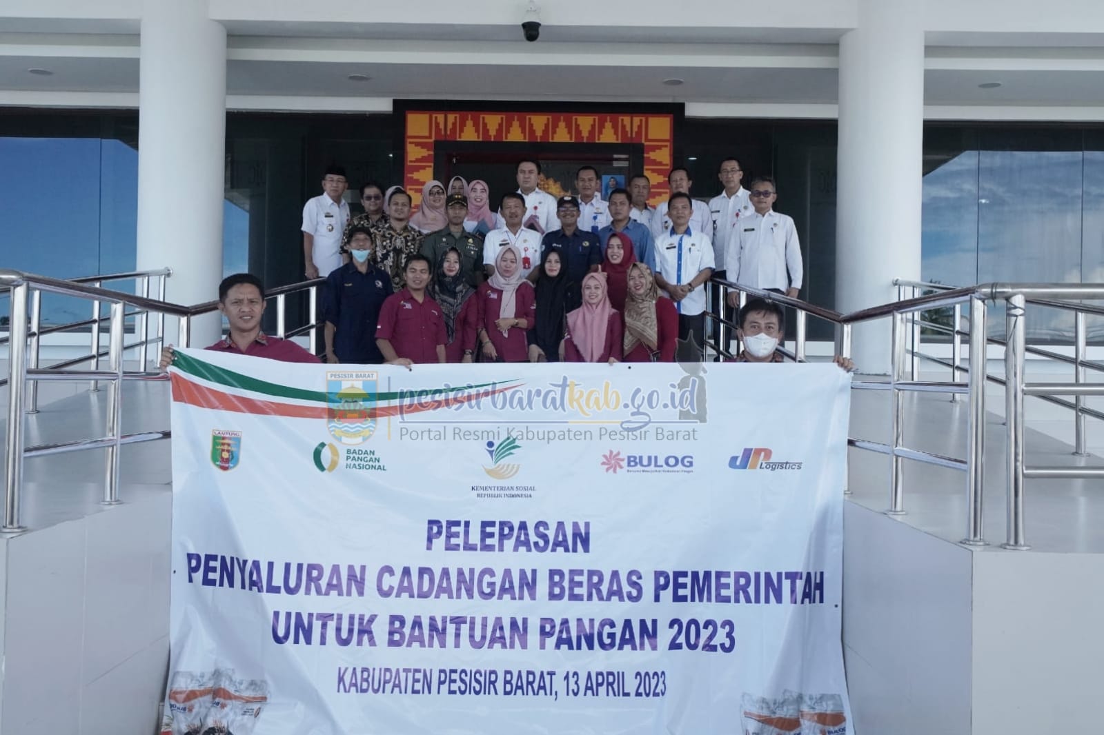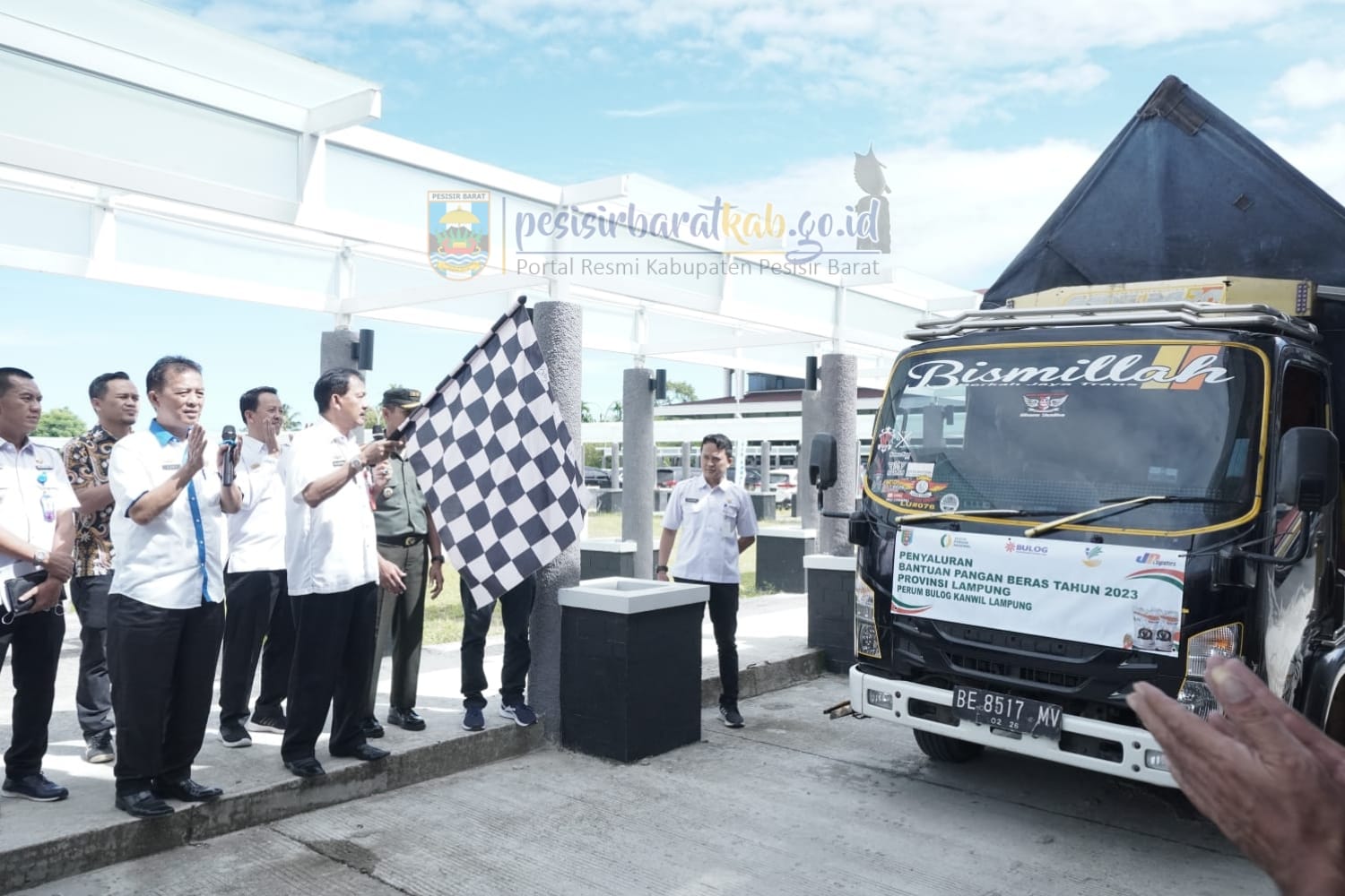 Kadis Kominfotiksan Kabupaten Pesisir Barat, Suryadi, S.IP., M.M. menginformasikan bahwa Bupati Pesisir Barat, Dr. Drs. Agus Istiqlal, S.H., M.H. melepas Tim Penyaluran Beras Bantuan Pangan hasil kerjasama dari Perum Bulog Subdivre Lampung Tengah-Metro dan Pemerintah Kabupaten (Pemkab) Pesisir Barat melalui Dinas Ketahanan Pangan dan Pertanian (DKPP) Kabupaten Pesisir Barat untuk 19.429 Keluarga Penerima Manfaat (KPM) dengan Beras Bantuan Pangan sejumlah 194.290kg (10kg/KPM) di 11 Kecamatan se-Kabupaten Pesisir Barat tahun 2023 secara simbolis bertempat di Selatsar Utama Komplek Perkantoran Pemkab Pesisir Barat. Kegiatan ini dilaksanakan dengan maksut dan tujuan untuk mengantisipasi, mitigasi, dan pelaksanaan penanggulangan pangan yang berdampak pada terjadinya krisis pangan dan gizi, pengendalian inflasi, serta melindungi produsen dan konsumen dari dampak fluktuasi harga beras di wilayah Kabupaten Pesisir Barat.
