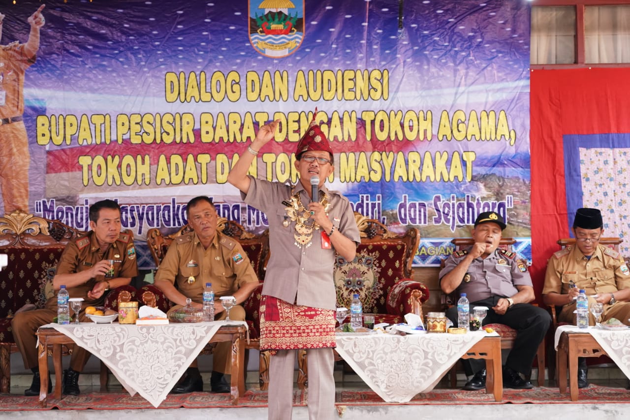 Bupati Pesisir Barat, Dr.Drs.Agus Istiqlal,SH.,MH Menghadiri Acara Audiensi dan Dialog dengan Tokoh Agama, Tokoh Adat, dan Tokoh Masyarakat.