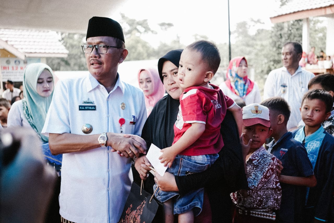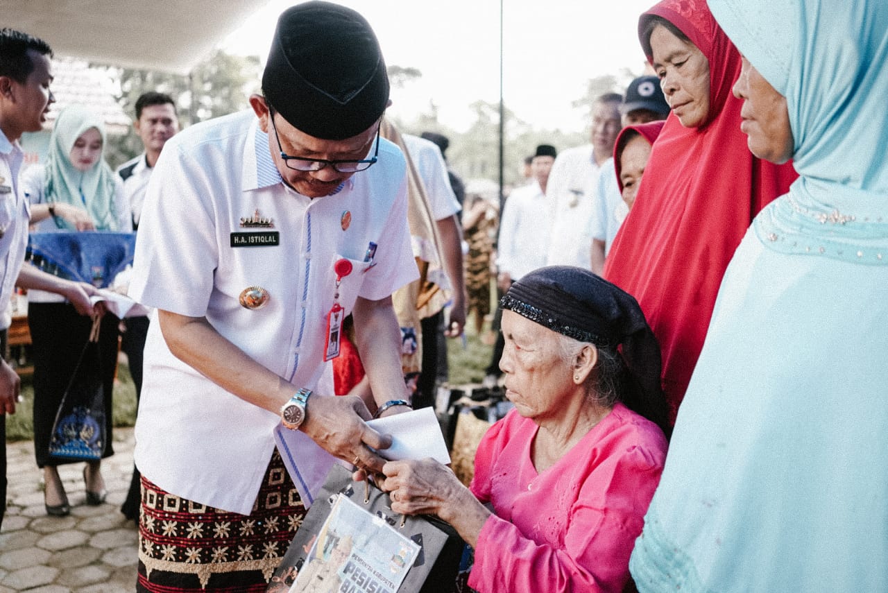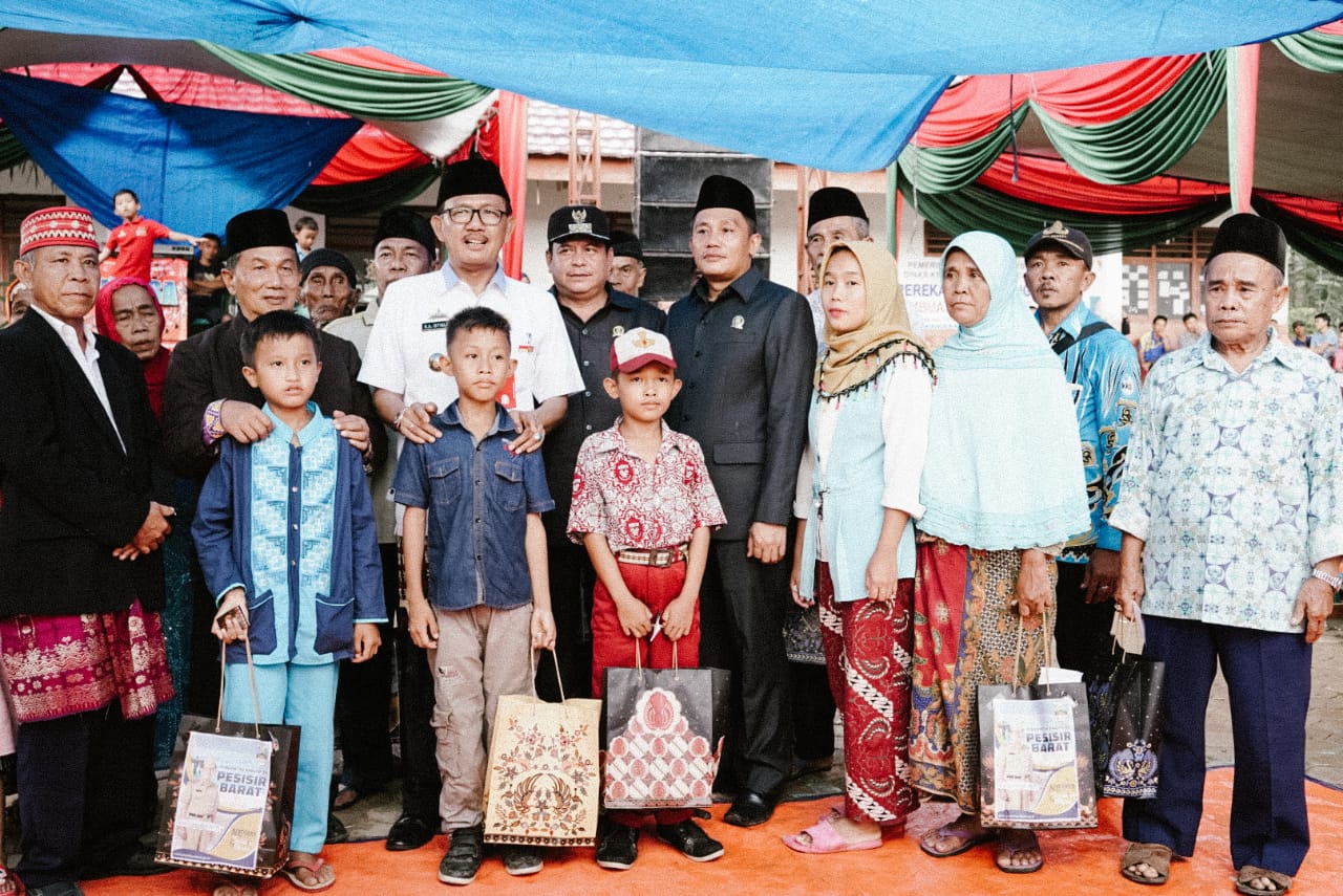 Selanjutnya dilakukan penyerahan santunan oleh Bupati Pesisir Barat untuk 10 orang anak yatim, dan 20 orang kaum duafa serta 63 KTP diberikan secara simbolis.