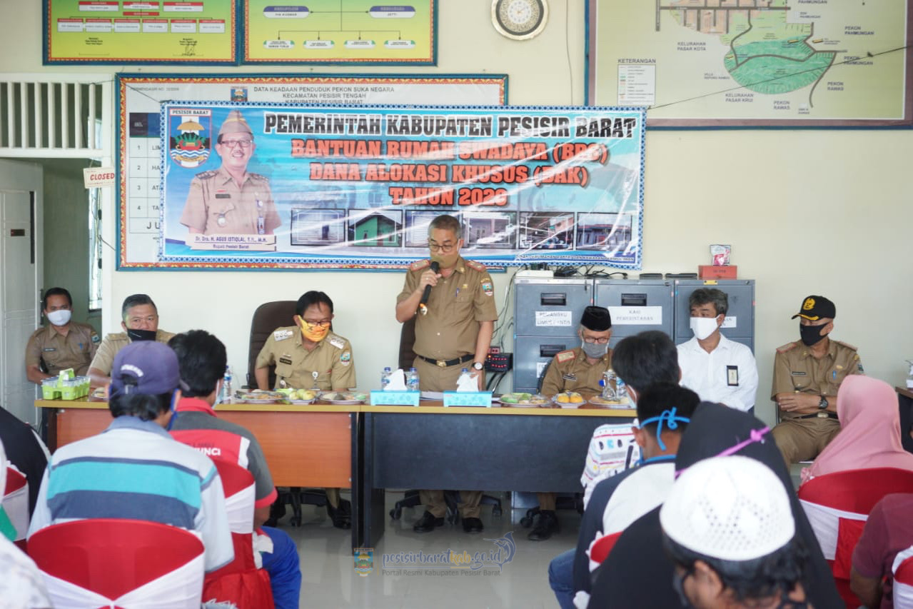 Dalam Sambutan Bupati Pesisir Barat Dr. Drs. H. Agus Istiqlal, SH.,MH bantuan rumah swadaya (brs) diberikan Pemerintah melalui Kementrian PUPR dak bidang perumahan diberikan oleh Kementrian PUPR Tahun 2020, merupakan program yang diamanatkan oleh undang-undang, khususnya undang-undang no 1 Tahun 2011 tentang perumahan dan kawasan permukiman, serta sebagai wujud nyata perhatian pemerintah kepada masyarakat dalam bentuk bantuan rumah swadaya.