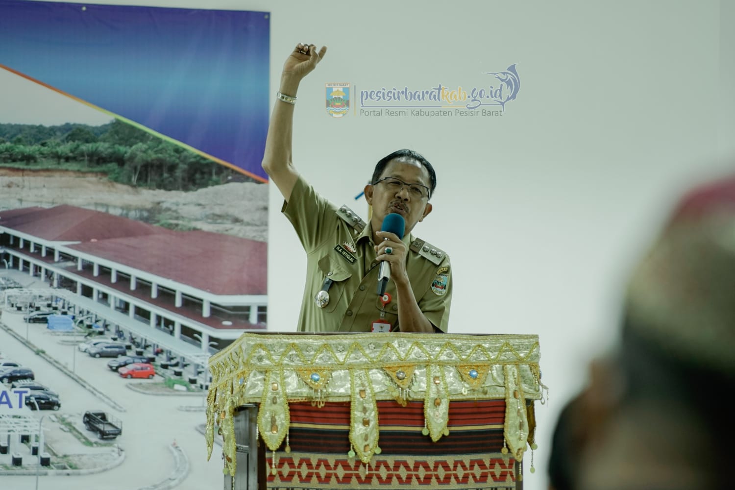 Bupati Pesisir Barat Dr. Drs. Agus Istiqlal, SH.,M.H dalam sambutannya menyampaikan atas nama pribadi dan Pemerintah Kabupaten Pesisir Barat menyambut dengan baik serta mengucapkan terimakasih yang sebesar-besarnya atas dukungan dan partisipasi serta kerja keras dari semua pihak yang terlibat dalam pembangunan gedung kantor ini, sehingga pembangunan kawasan perkantoran di Daerah Kabupaten Pesisir Barat di Negeri Para Sai Batin Dan Para Ulama, sebagaimana yang kita saksikan bersama ini.