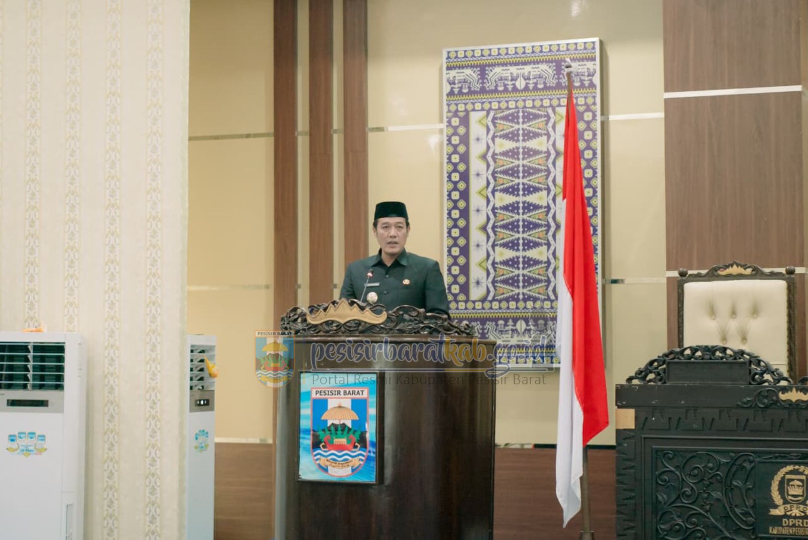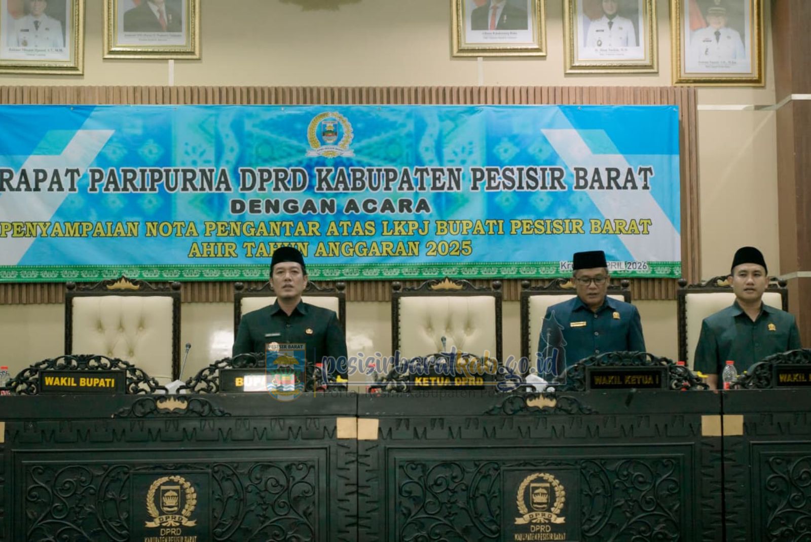 Atas nama Pemerintah Daerah, Bupati menyampaikan apresiasi dan terima kasih kepada DPRD Kabupaten Pesisir Barat yang telah mengagendakan rapat paripurna tersebut. Ucapan serupa juga disampaikan kepada seluruh pimpinan hingga staf perangkat daerah yang telah menuntaskan program, kegiatan, dan subkegiatan sepanjang Tahun Anggaran 2025.