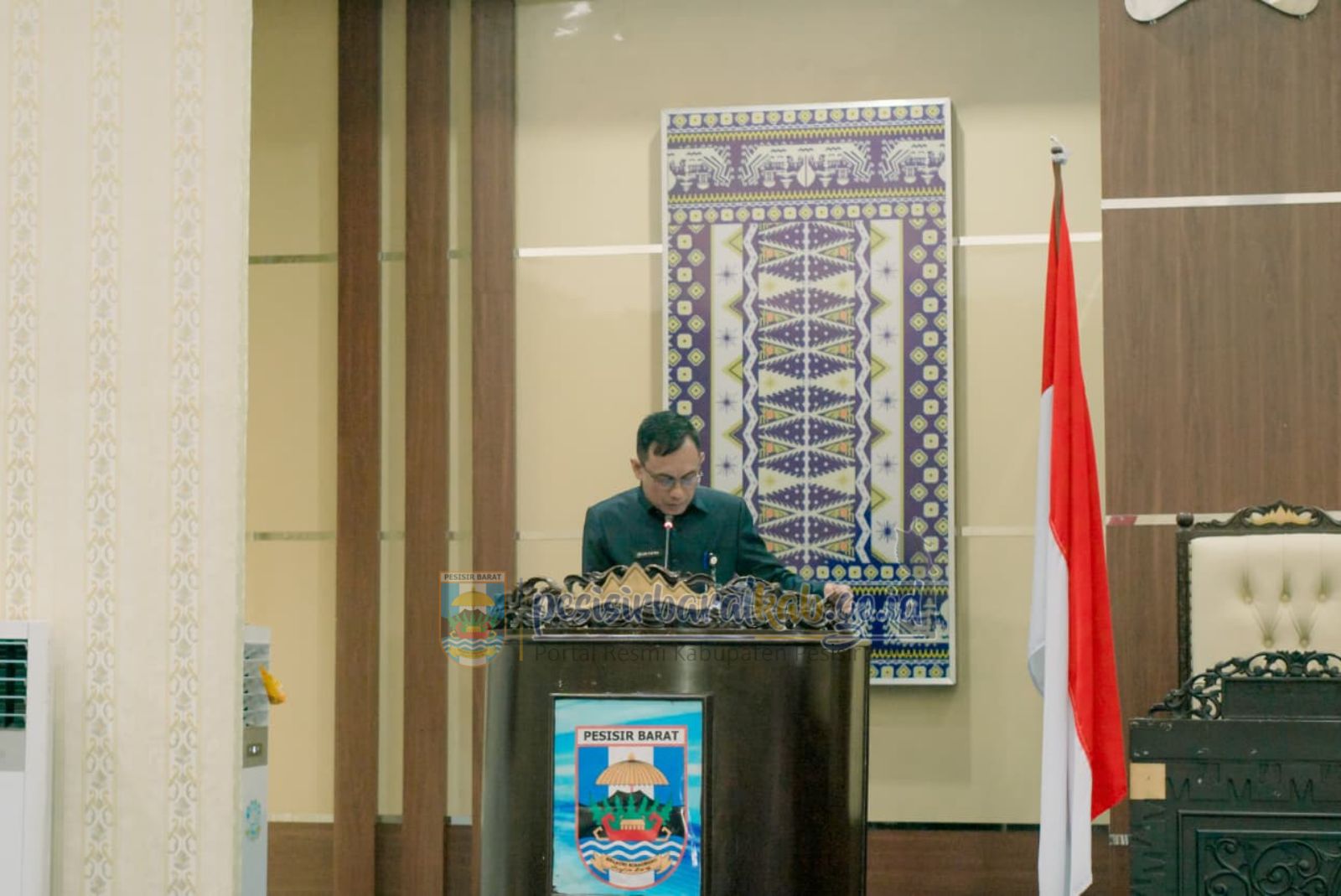 PESISIR BARAT – Bupati Pesisir Barat, Dedi Irawan, menyampaikan Laporan Keterangan Pertanggungjawaban (LKPJ) Tahun Anggaran 2025 dalam Rapat Paripurna DPRD Kabupaten Pesisir Barat yang digelar di ruang rapat paripurna DPRD Pesibar, Selasa (07/04/2026).