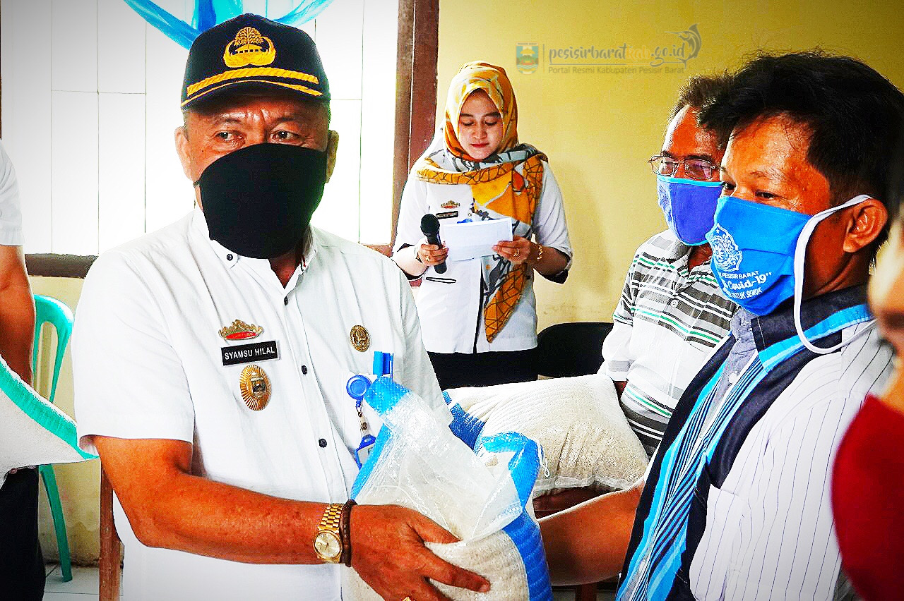 Bupati Pesisir Barat Serahkan Bantuan Beras Cadangan Pangan Bagi Masyarakat Terdampak Covid-19 Kabupaten Pesisir Barat.