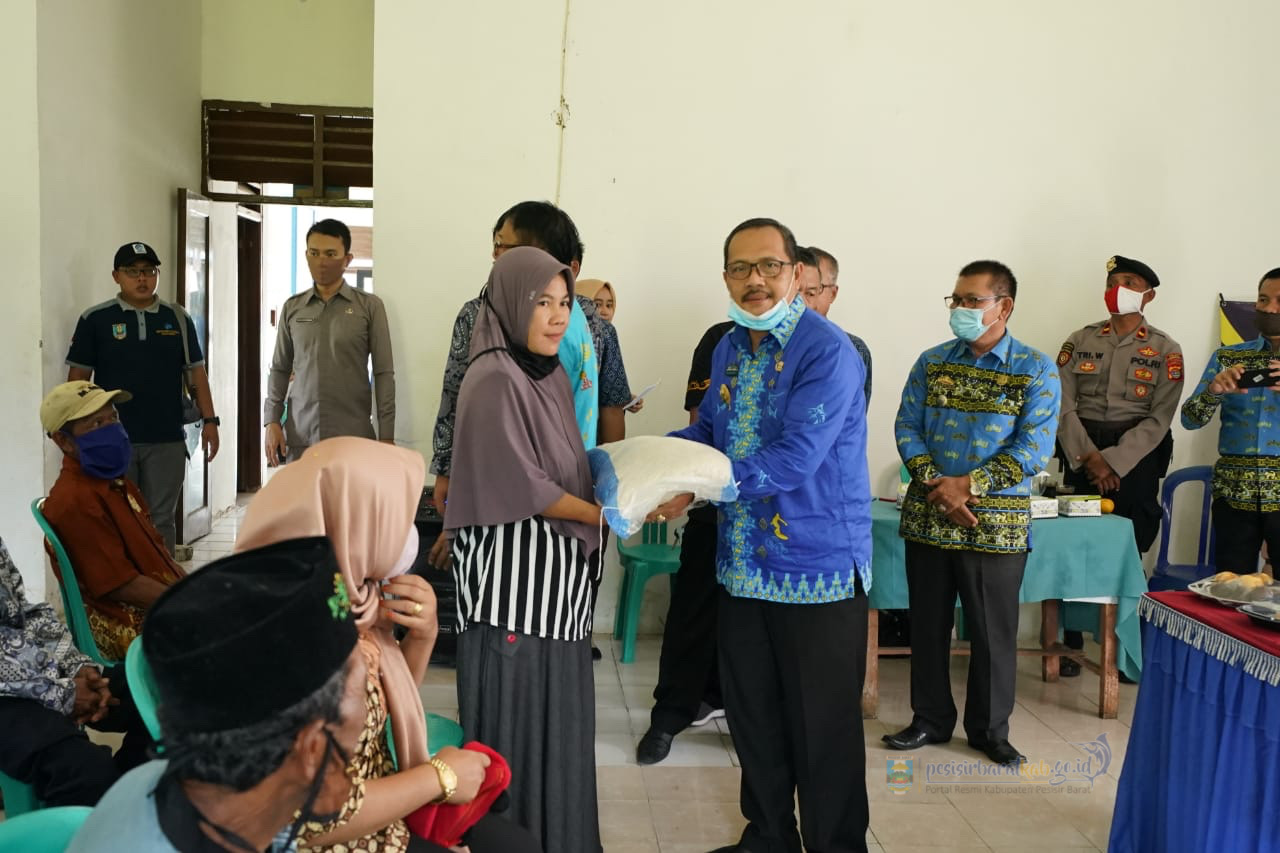 Bupati Pesisir Barat Serahkan Bantuan Beras Cadangan Pangan Bagi Masyarakat Terdampak Covid-19 Kabupaten Pesisir Barat.
