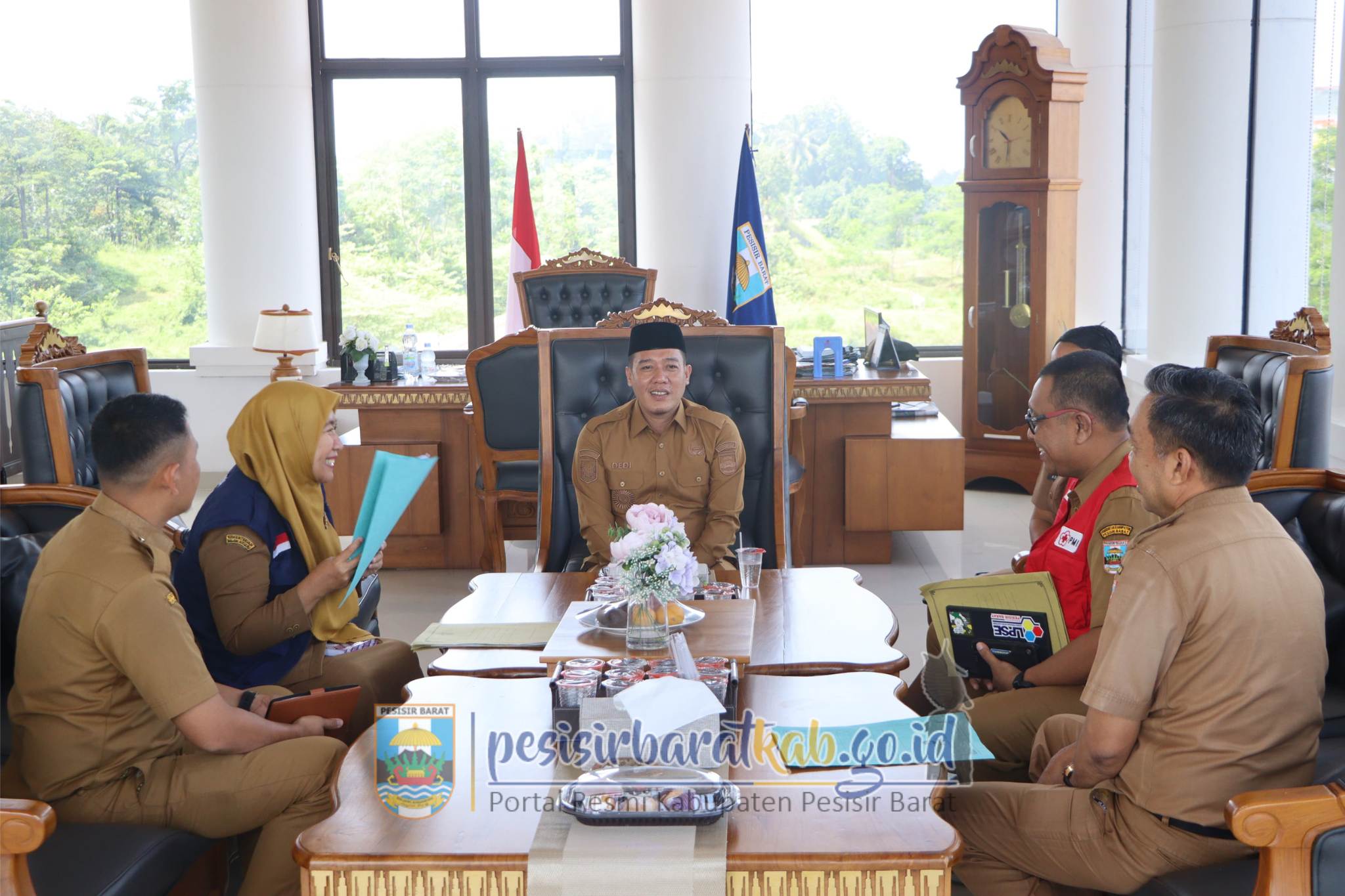 PESISIR BARAT-Bupati Pesisir Barat, Dedi Irawan, menerima kunjungan dari Palang Merah Indonesia (PMI) Pesibar dalam rangka audiensi memperingati Hari Ulang Tahun (HUT) PMI Provinsi Lampung ke-60, diruang kerja Bupati, Lantai 5 Gedung Marga Sai Batin Komplek Perkantoran Pemkab Pesibar, Selasa (23/9/2025).