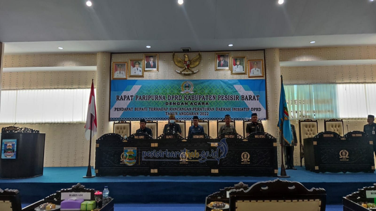 Kepala Dinas Kominfotik & Persandian Pesisir Barat Suryadi, S.IP., MM Menginformasikan bahwa Bupati Dr. Drs. Agus Istiqlal, SH.,M.H didampingi Wakil Bupati Pesisir Barat A. Zulqoini Syarif, SH mengikuti Rapat Paripurna Pendapat Bupati Terhadap Rancangan Peraturan Daerah Inisiatif DPRD Tahun Anggaran 2022 di Gedung DPRD Lantai 3 Kecamatan Pesisir Tengah.