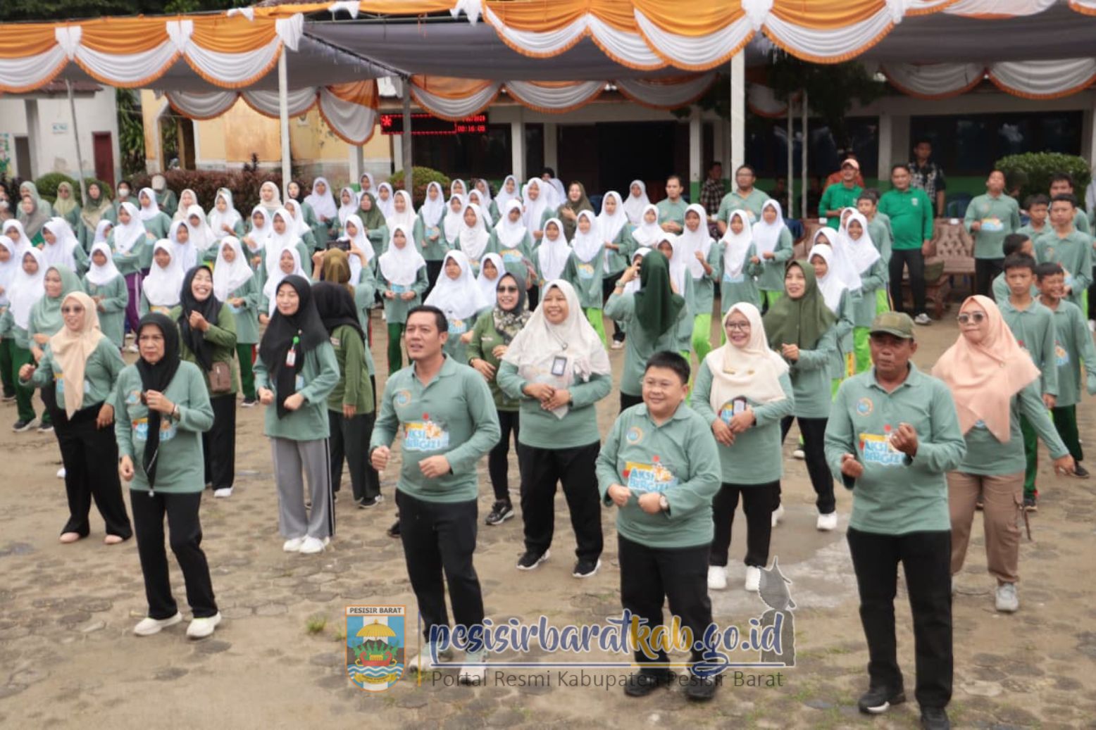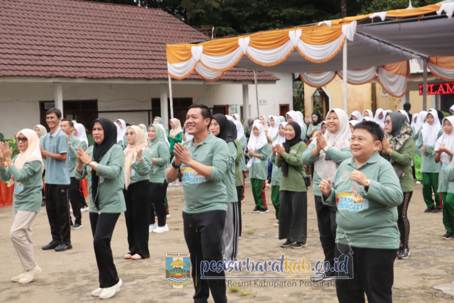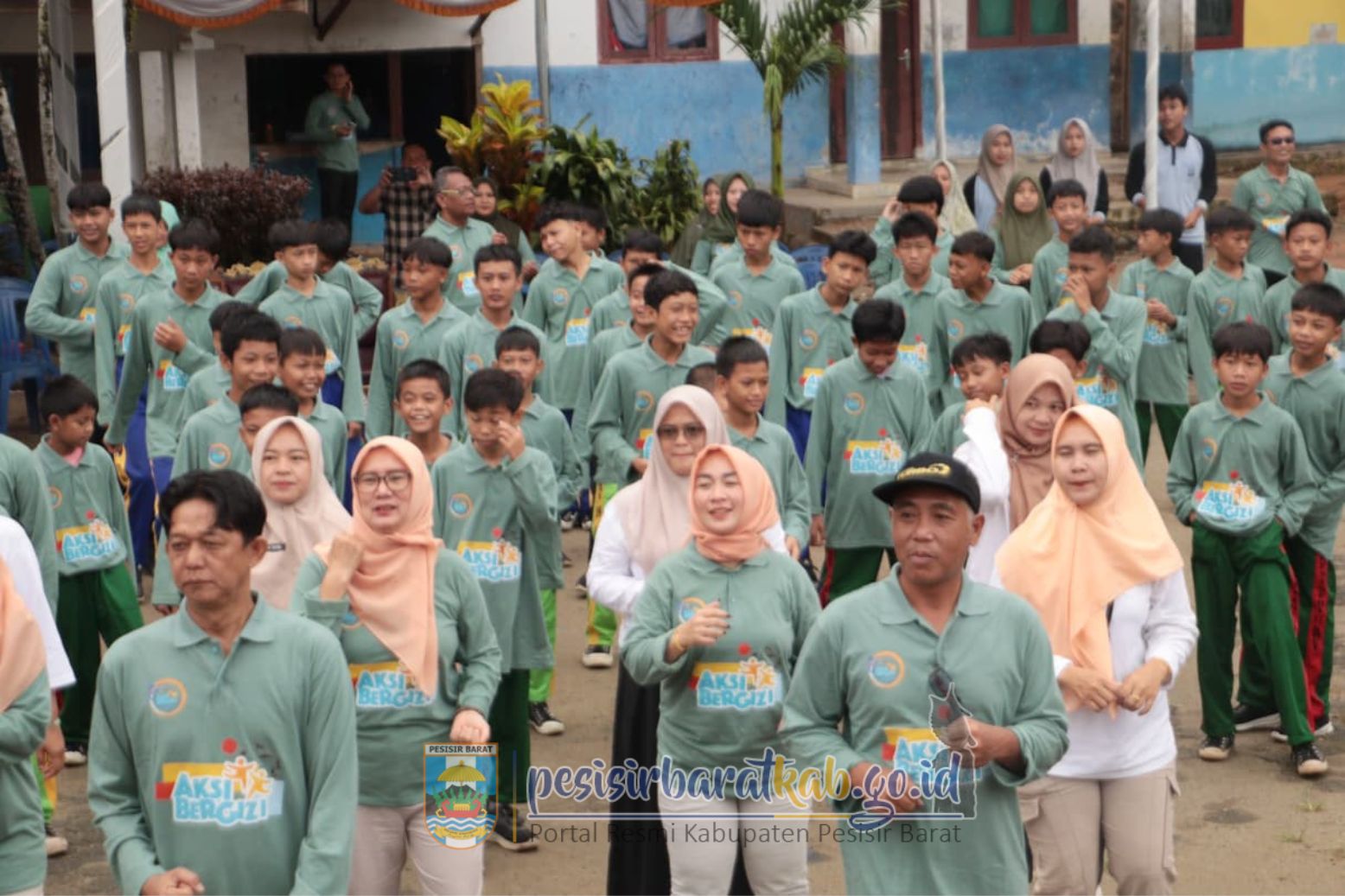 PESISIR BARAT-Bupati - Wakil Bupati Pesisir Barat (Pesibar), Dedi Irawan - Irawan Topani, S.H., M.Kn., menghadiri kegiatan aksi bergizi Tahun 2025 yang dipusatkan di SMPN 17 Krui Kecamatan Way Krui, Kamis (23/10/2025).