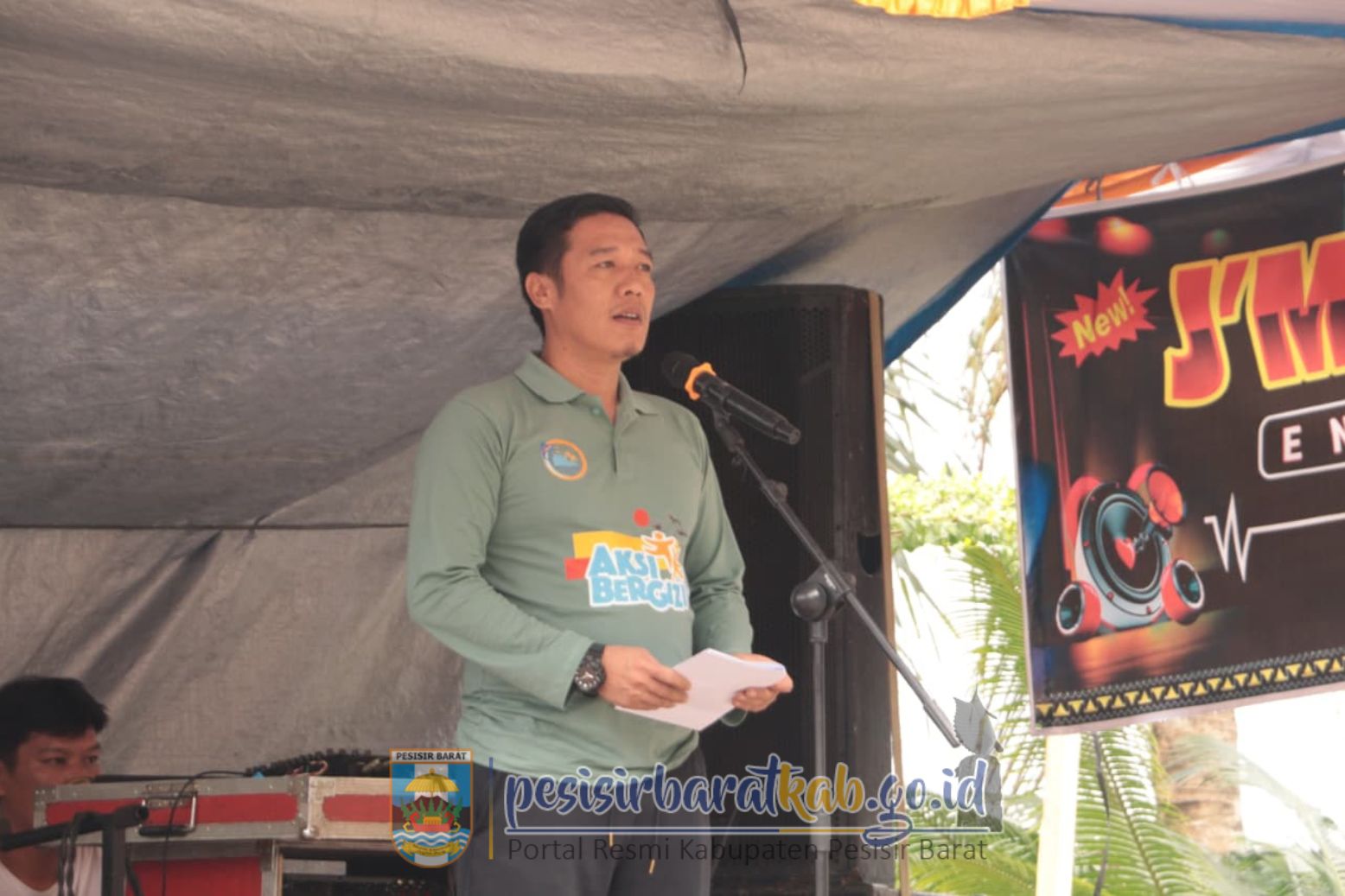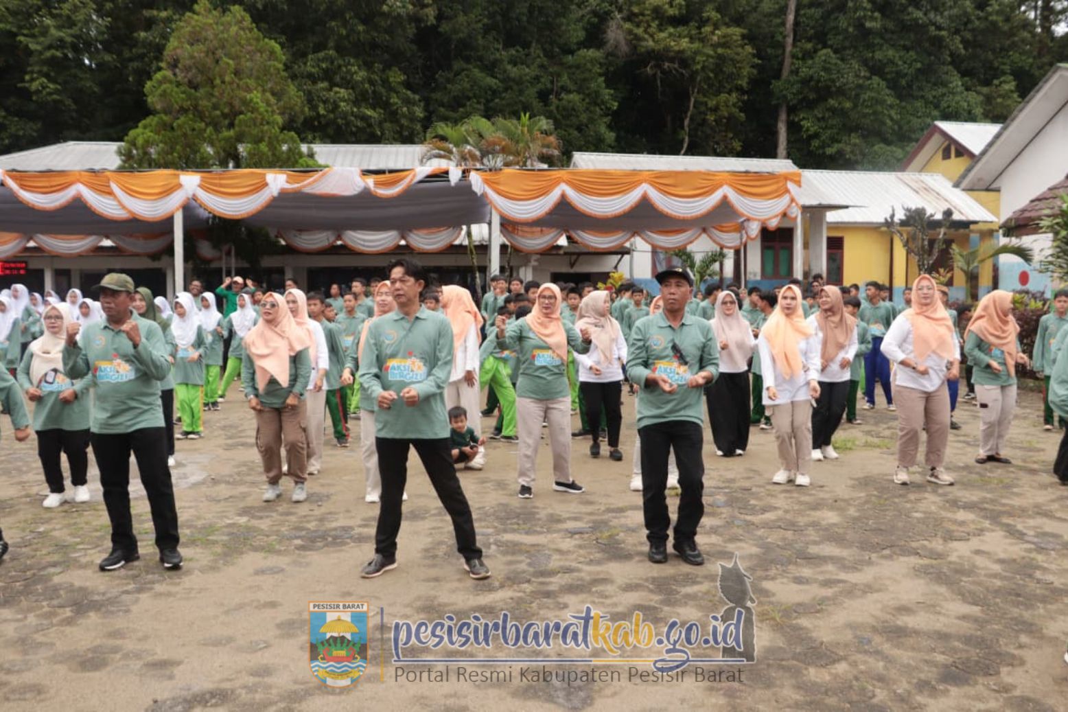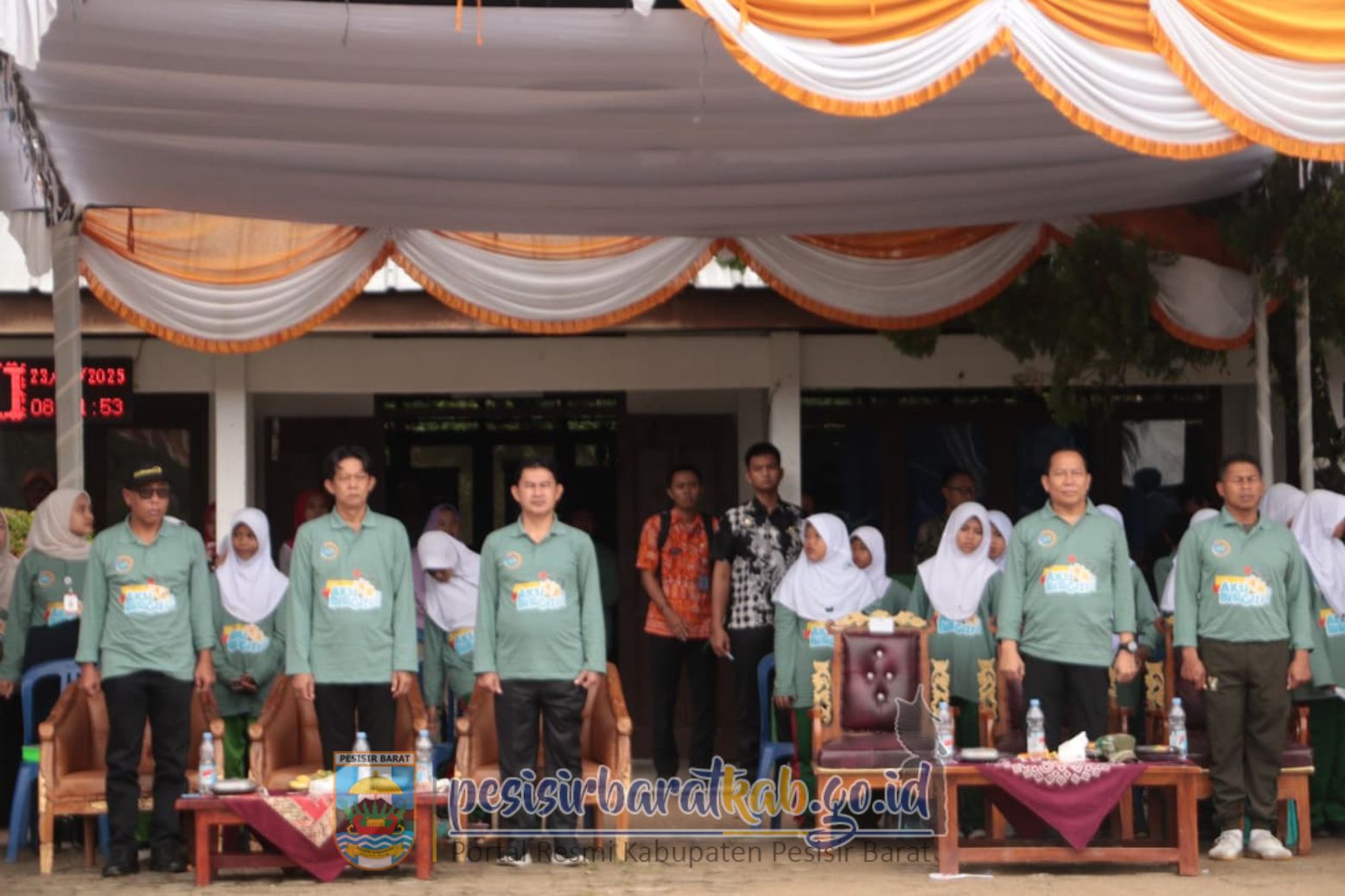 PESISIR BARAT-Bupati - Wakil Bupati Pesisir Barat (Pesibar), Dedi Irawan - Irawan Topani, S.H., M.Kn., menghadiri kegiatan aksi bergizi Tahun 2025 yang dipusatkan di SMPN 17 Krui Kecamatan Way Krui, Kamis (23/10/2025).