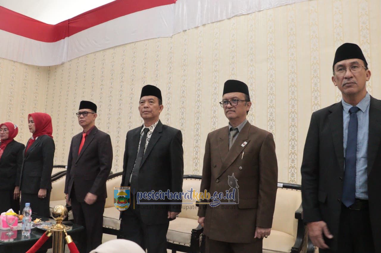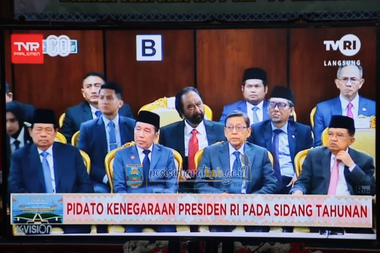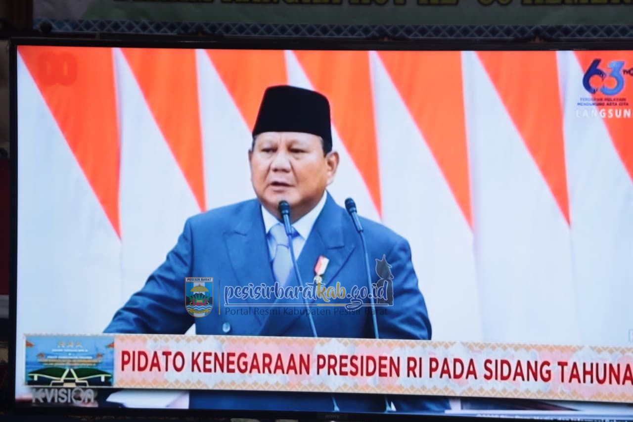 PESISIR BARAT-Bupati - Wakil Bupati Pesisir Barat (Pesibar), Dedi Irawan - Irawan Topani, S.H., M.Kn., menghadiri rapat Paripurna Dewan Perwakilan Rakyat Daerah (DPRD) dengan Agenda Mendengarkan Pidato Kenegaraan Presiden Republik Indonesia (RI) dalam rangka Hari Ulang Tahun (HUT) ke-80 Kemerdekaan RI, di ruang rapat paripurna DPRD Pesibar, Jumat (15/8/2025).