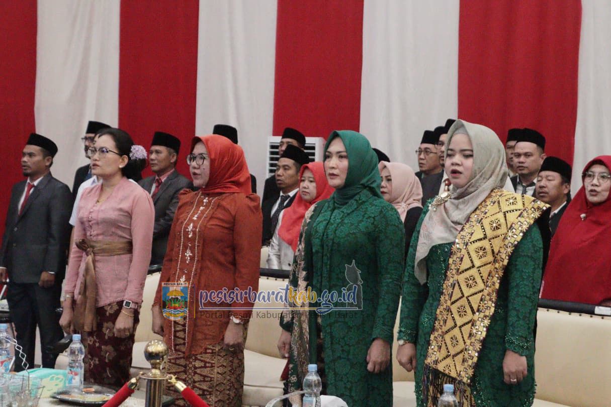 Tampak hadir juga Pj. Sekda Pesibar, Tedi Zadmiko, S.KM., S.H., M.M., Para Asisten, Staf Ahli Bupati, Ketua TP-PKK Pesibar, Dian Hardiyanti Dedi, S.ST., M.M., Ketua I TP-PKK Pesibar, Dea Derika Topani, S.H., M.Kn., Ketua DWP Pesibar, Eliza Wati Tedi, S. Sos.para kepala Organisasi Perangkat Daerah (OPD), Forkopimda, dan Camat.