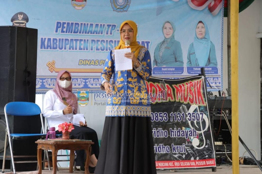PESISIR BARAT-Kepala Dinas Komunikasi, Informatika, Statistik dan Persandian (Diskominfotiksan), Suryadi, S.IP., M.M. menginformasikan bahwa, Ketua Tim Penggerak-Pemberdayaan Kesejahteraan Keluarga (TP-PKK) Kabupaten Pesisir Barat (Pesibar), Septi Istiqlal, membuka kegiatan Pembinaan TP-PKK Kecamatan dan Pekon se-Kecamatan Pesisir Tengah dalam rangka percepatan penurunan angka stunting di Pesibar, yang digelar di Halaman Kecamatan Pesisir Tengah, Kamis (12/10).